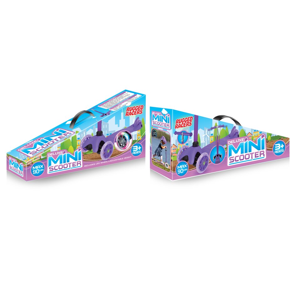 • Rugged Racer Mini Deluxe 3-Wheel Kick Scooter with LED and Adjustable Height