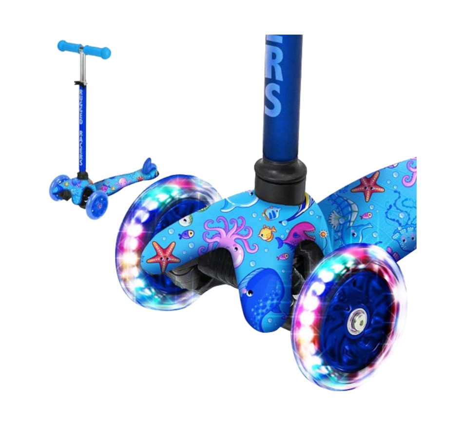 Mini Deluxe Three-Wheel Scooter with LED Lights and Sea World Design
