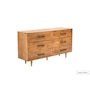 Introducing the gorgeous Cypress Six Drawer Dresser, made entirely from 100% FSC certified recycled wood, featuring a beautiful natural distressed spice finish. The reinforced butt joints and corner blocks ensure that this dresser is both sturdy and long-lasting, while the smooth metal ball bearing glides and drawer stoppers provide easy and safe access to your belongings. The back of the dresser is finished to protect the wood and ensure that it is built to withstand the test of time. With six spacious drawers, this dresser provides ample storage space for all of your clothing and accessories. Not only is this dresser visually stunning, but it is also environmentally conscious, making it an ideal choice for those who are looking to incorporate sustainable and eco-friendly furniture into their home. Choose this dresser to add both style and functionality to your bedroom decor.