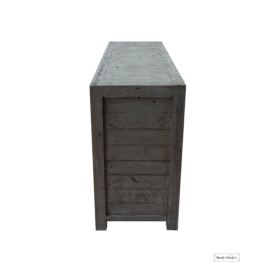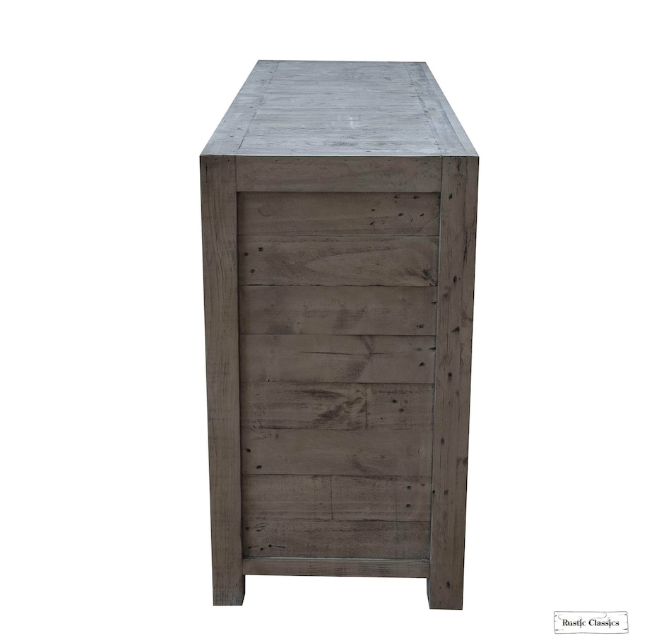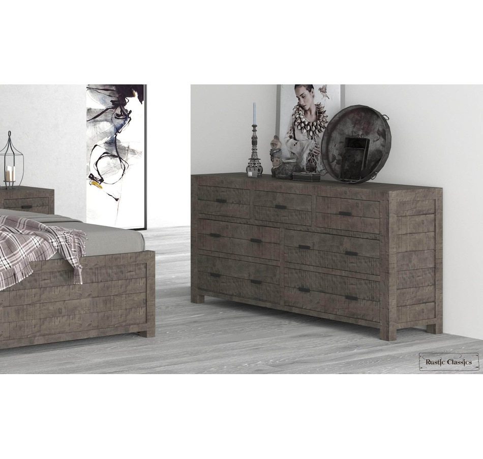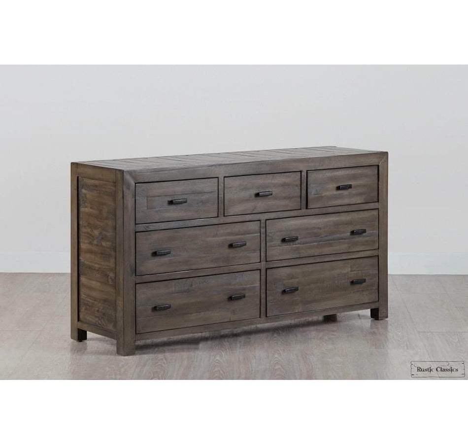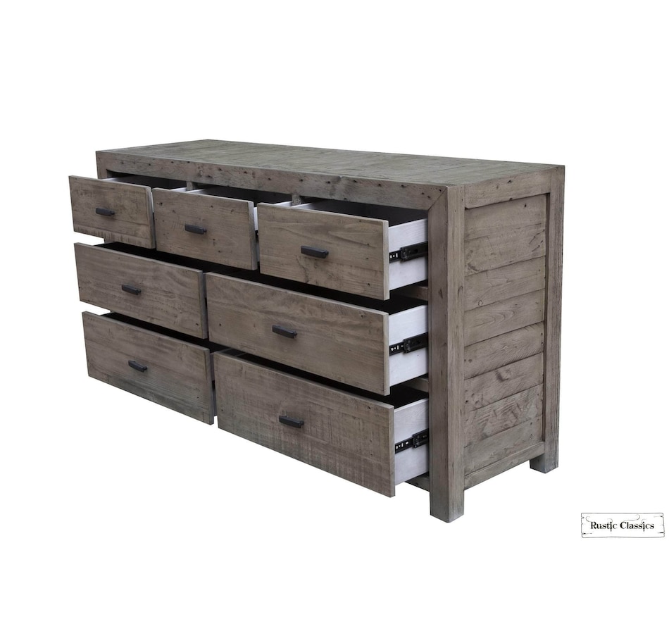The Whistler dresser will add a rustic look to any bedroom with its grey finish and natural distressing from the reclaimed pine wood. The dresser matches perfectly with wooden or upholstered bed frames. Keep all your clothes and bedding organized in your bedroom with this dresser. The seven drawers are reinforced with butt joints for enhanced durability and feature metal ball bearing glides for smooth opening and closing. The Whistler collection is made from 100% FSC-certified recycled wood, making it one of our most environmentally-friendly products. Transform your bedroom into an eco-friendly sanctuary with the Whistler collection.