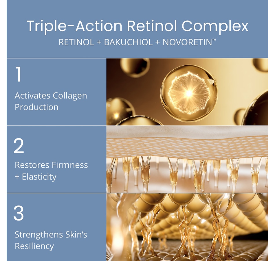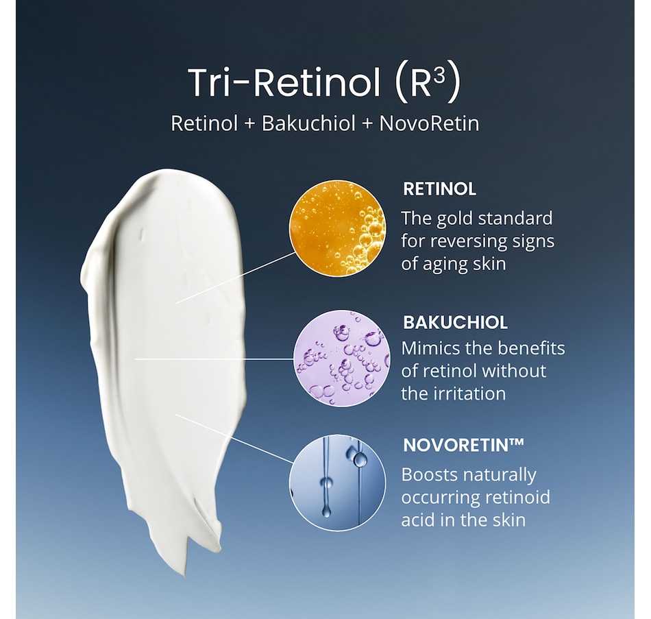 Harness the restorative power of night with this rapid correction overnight repair cream formulated with Tri-Retinol (R3), a triple-action retinol complex that combines the transformative power of retinol, bakuchiol NovoRetin to combat correct severe signs of aging skin.