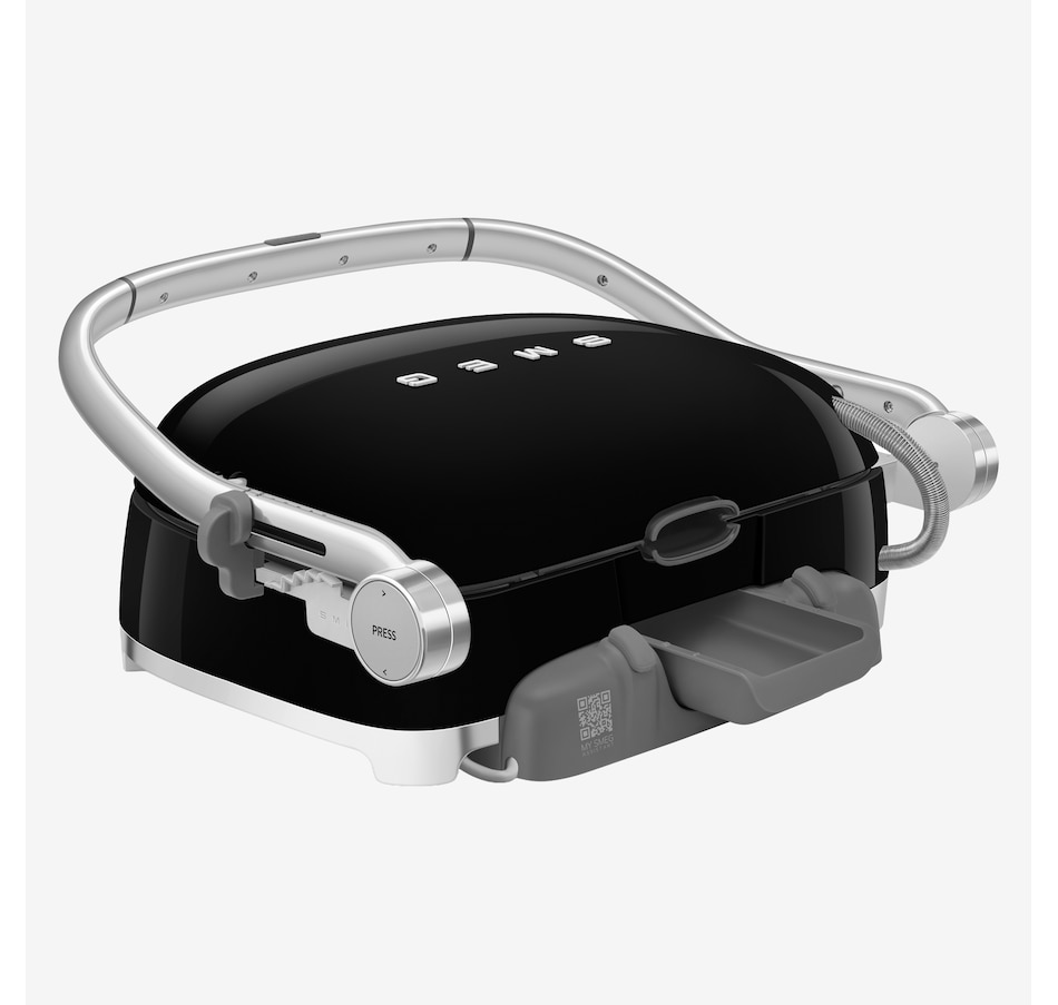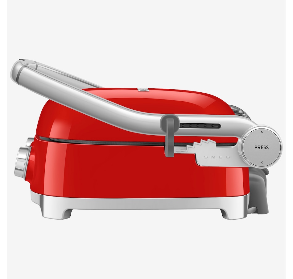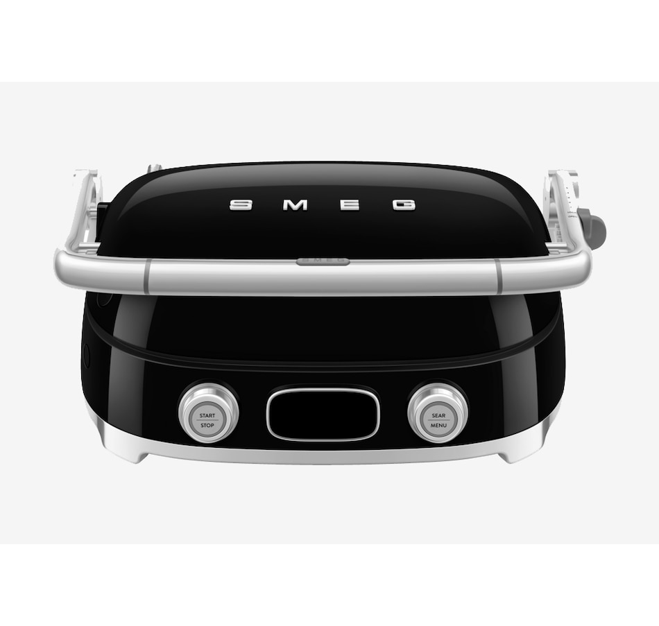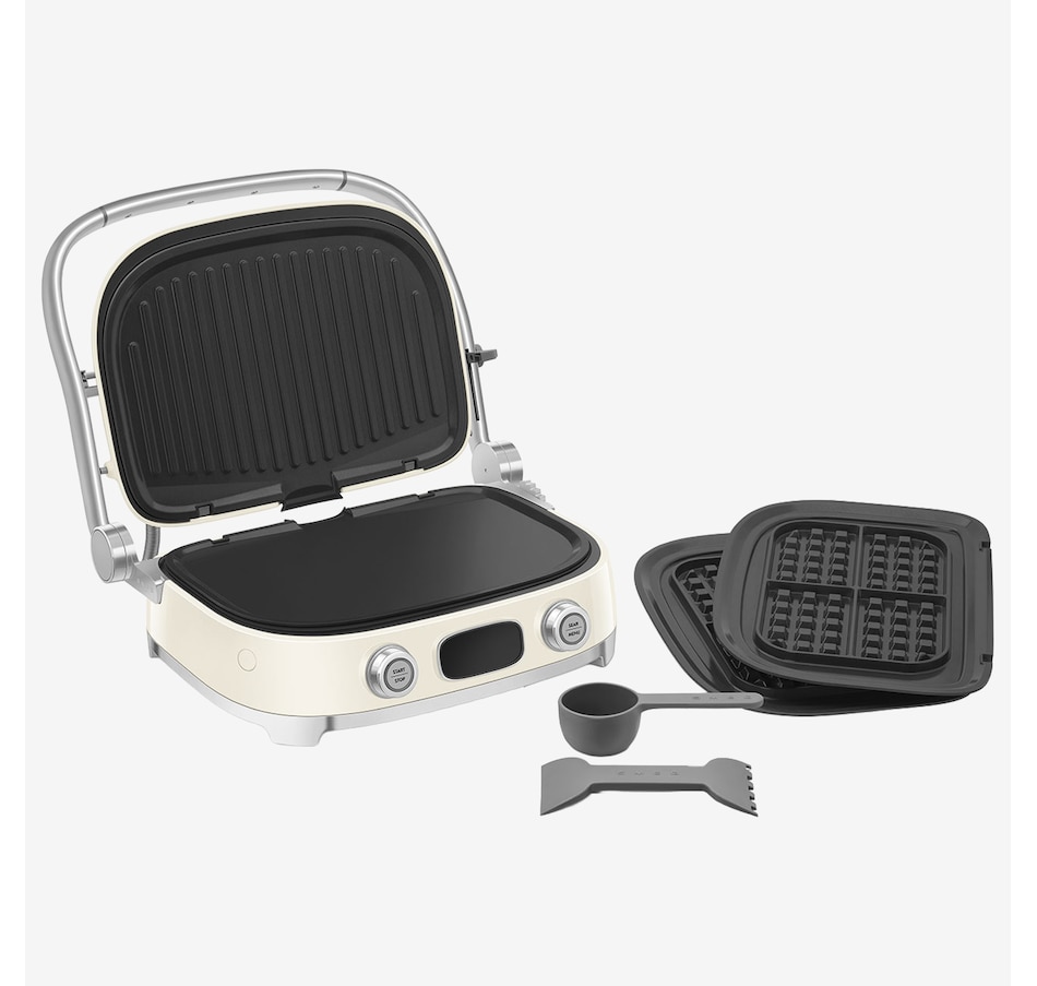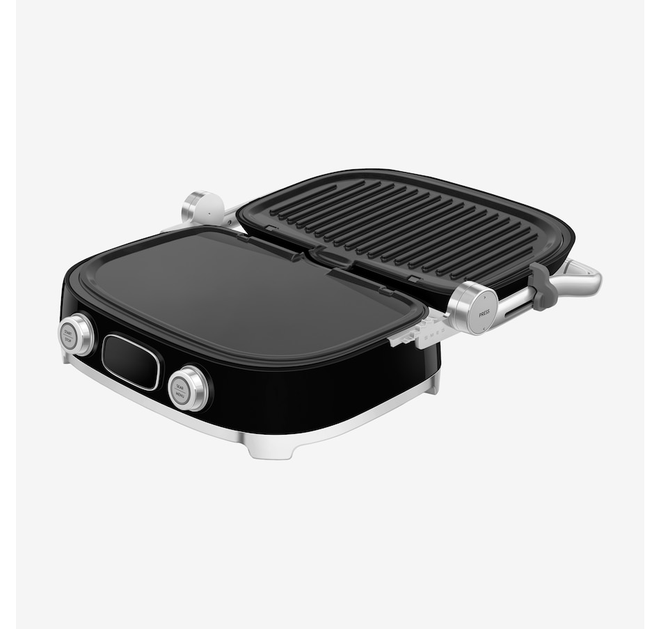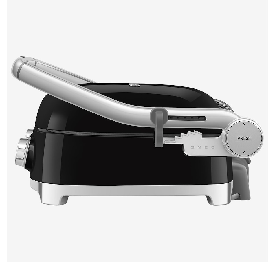 This grill from SMEG offers 2,000 watts of power along with three presets (panini, waffle, burger) and three plate positions (contact, oven, grill) to cover multiple cooking needs and recipes. It also features independent temperature controls for the plates and a sear function, a non-stick ceramic coating and dishwasher-safe plates.