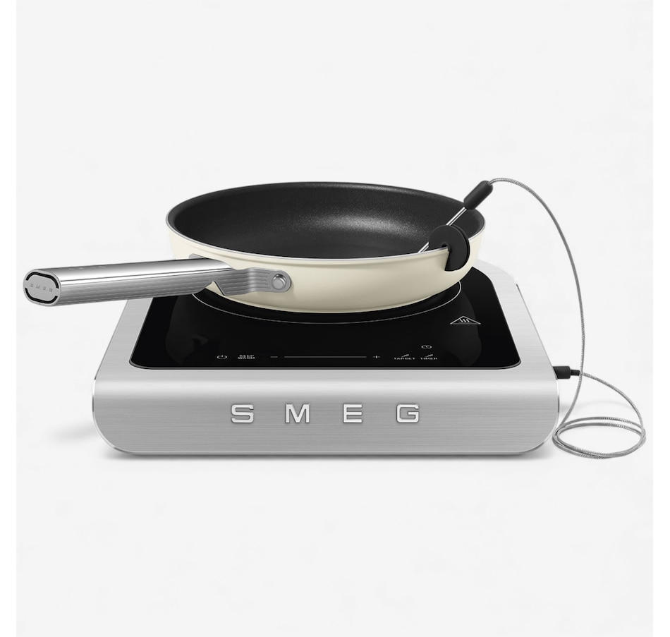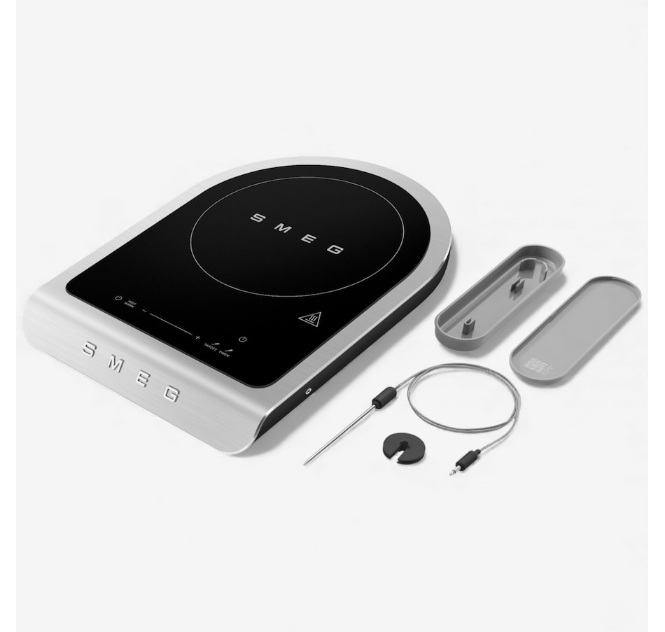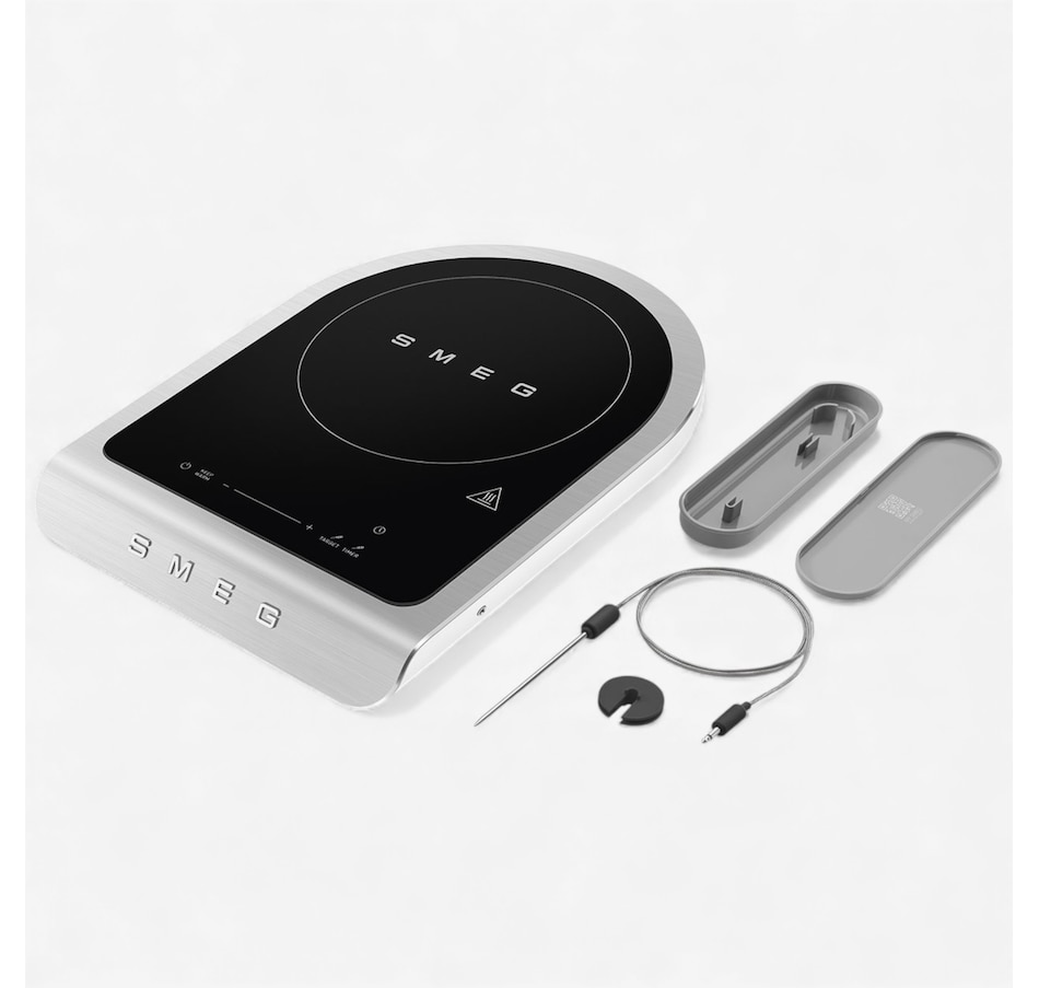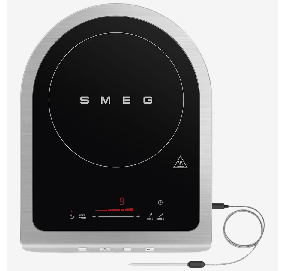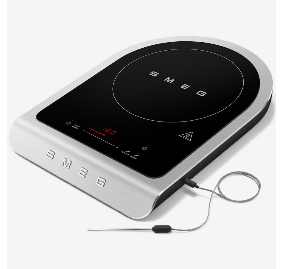 Cook with precision and style using the SMEG Induction Cooker. Designed for high-level performance, it features nine power levels and a boost function to handle everything from delicate sauces to robust searing. The touch-control display makes selecting programs effortless, while the included temperature probe helps ensure perfect results every time. Enjoy dedicated settings for barbecuing vegetables, fish and meat, plus frying programs for fresh or frozen foods and desserts. With automatic switch-off, pause and keep-warm functions, your dishes are always ready when you are. Compact yet powerful at 2,100 watts, this cooker brings versatility and convenience to your kitchen.