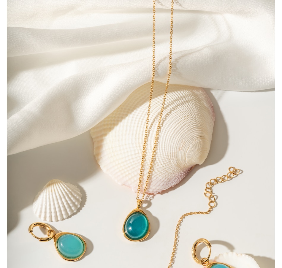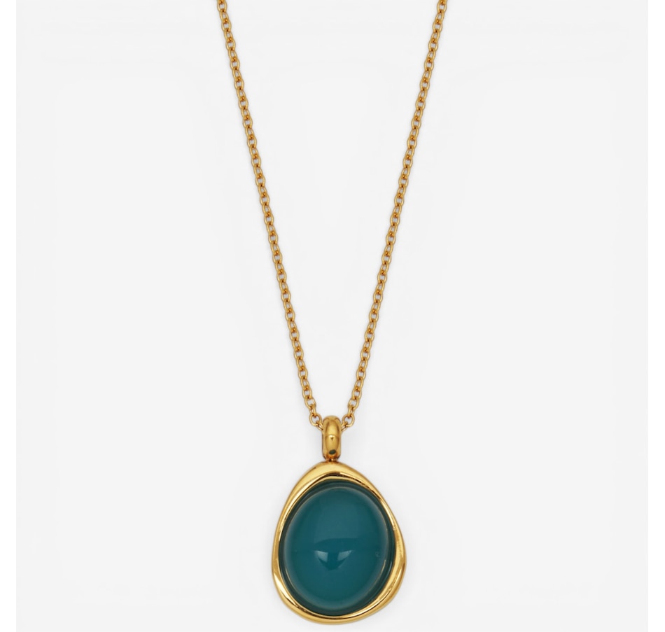 This pendant showcases the soft glow of blue cat’s eye set in a polished yellow‑gold‑plated design. The smooth oval stone adds a touch of colour and elegance, while the refined rolo chain creates a modern, versatile look. Lightweight and stylish, the piece brings a captivating accent to any jewellery collection.