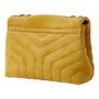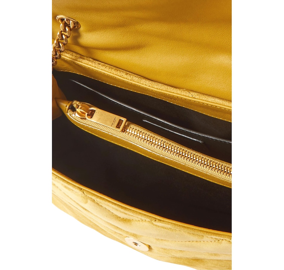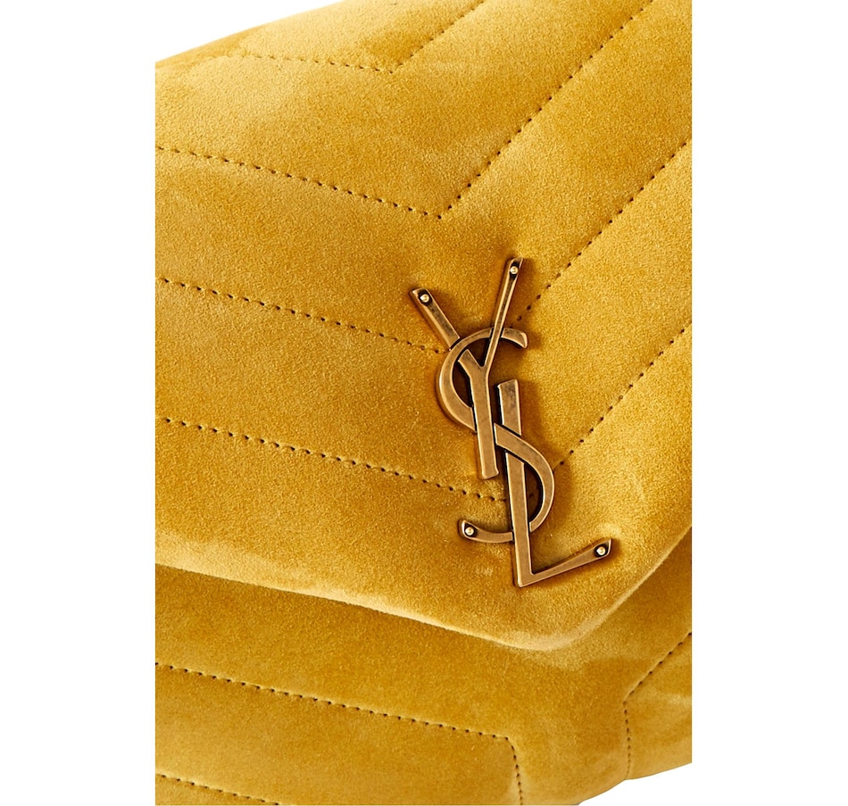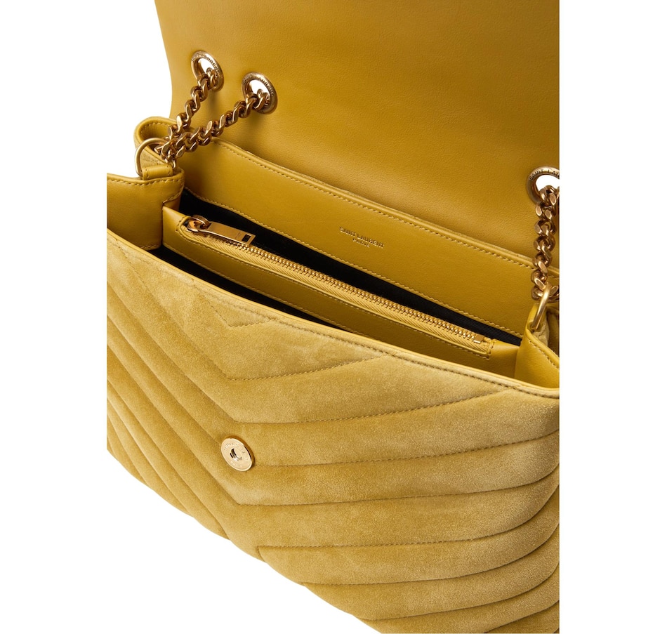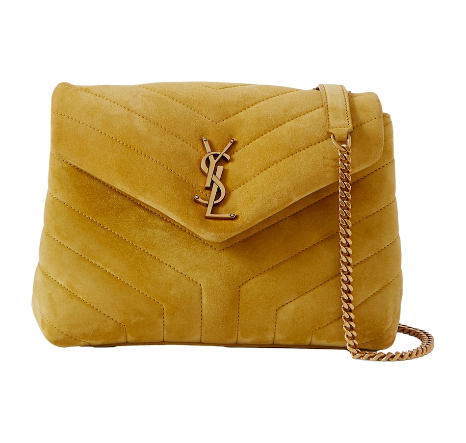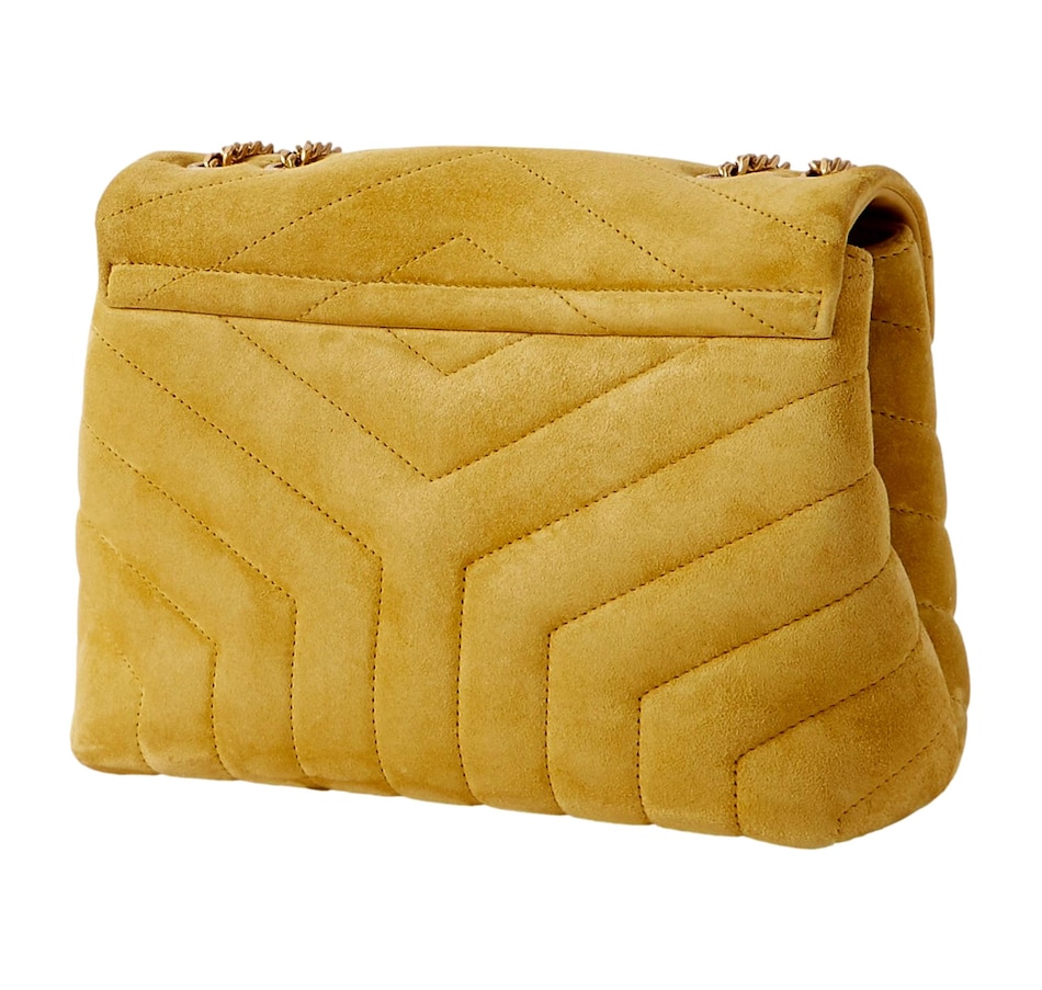 Elevate your style with the Saint Laurent Loulou Suede Yellow Shoulder Bag! This shoulder bag features a significant amount of space with two interior pockets. You can adjust the shoulder straps to make it comfortable for you. The Quilted Velvet Pattern makes this the perfect bag for an evening event, business meeting, or casual outing!