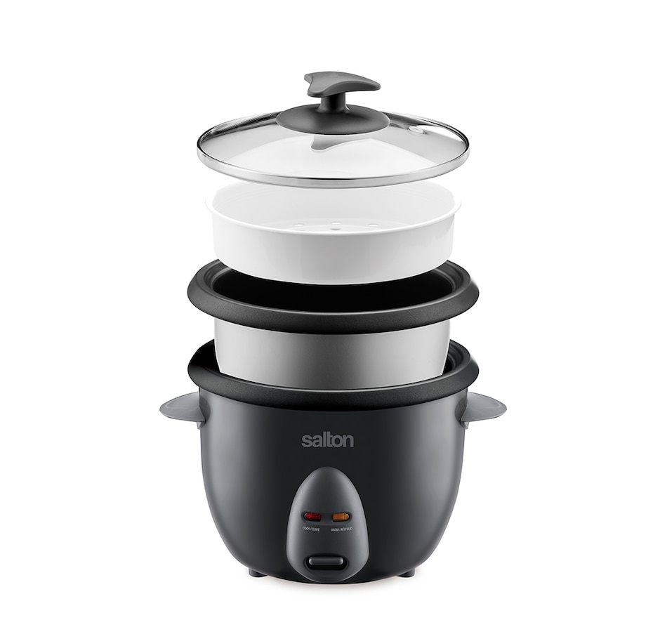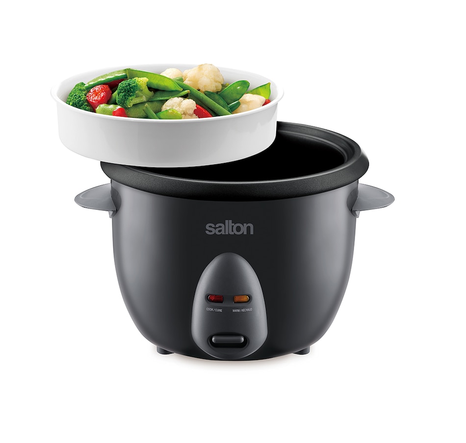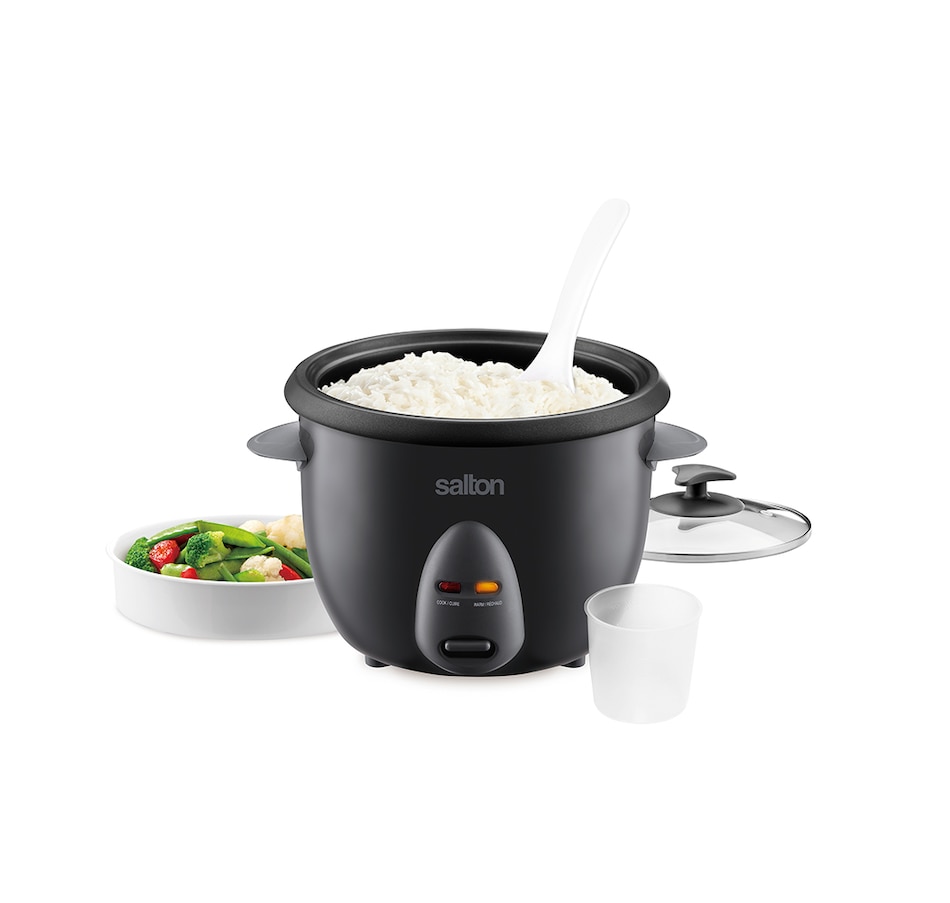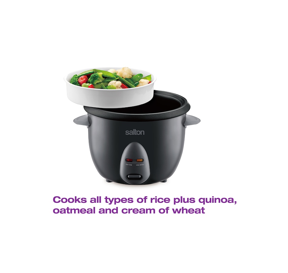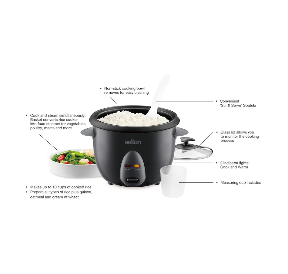 This Salton rice cooker can cook up to 10 cups of delicious rice and keep it warm until you are ready to serve. The non-stick bowl removes for easy cleaning, and it comes with a convenient ‘stir and serve’ spatula and a glass lid to monitor the cooking process. The included steaming basket lets you prepare vegetables, fish, and more while your rice cooks. It makes for the perfect amount of fluffy rice every time!