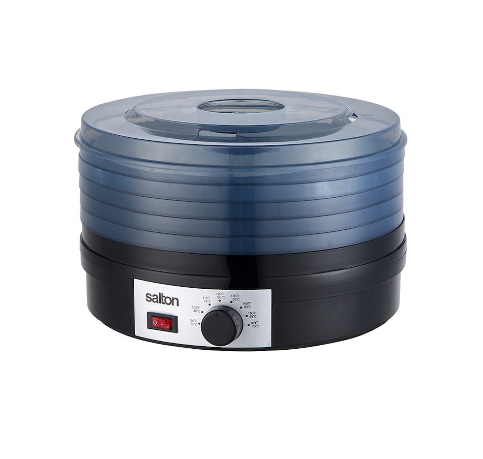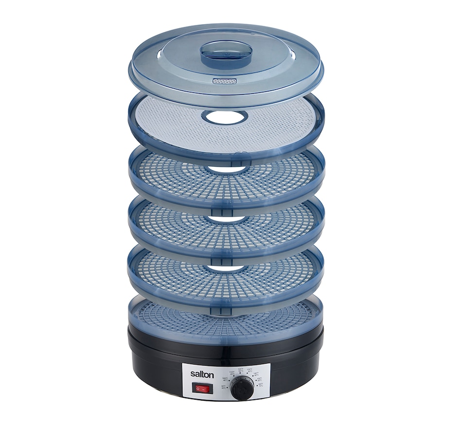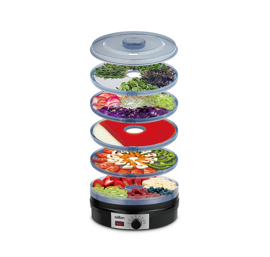 This is the easy and economical way for drying fruits for snacks, vegetables and herbs for soups, meat for jerky, bread for croutons and flowers for arrangements or potpourri! The Salton food dehydrator has adjustable heat control and a quiet motor which circulates the air, eliminating the need to rotate trays.