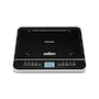 The Salton induction cooktop and temperature probe work together to deliver automatic precision cooking for sous vide, deep frying, and slow cooking in one simple and sleek gourmet appliance. Whether you are new to the kitchen or a seasoned chef, this product will help you create flawless and repeatable dishes, again and again. The 10 temperature settings from 60°C to 240°C and 1500 watts provide the power to melt butter, steam, sear, stir-fry and boil. Boasting a solid crystal glass top, count down timer and easy to clean touch sensitive controls, this deluxe induction cooktop is perfect for everyday use.