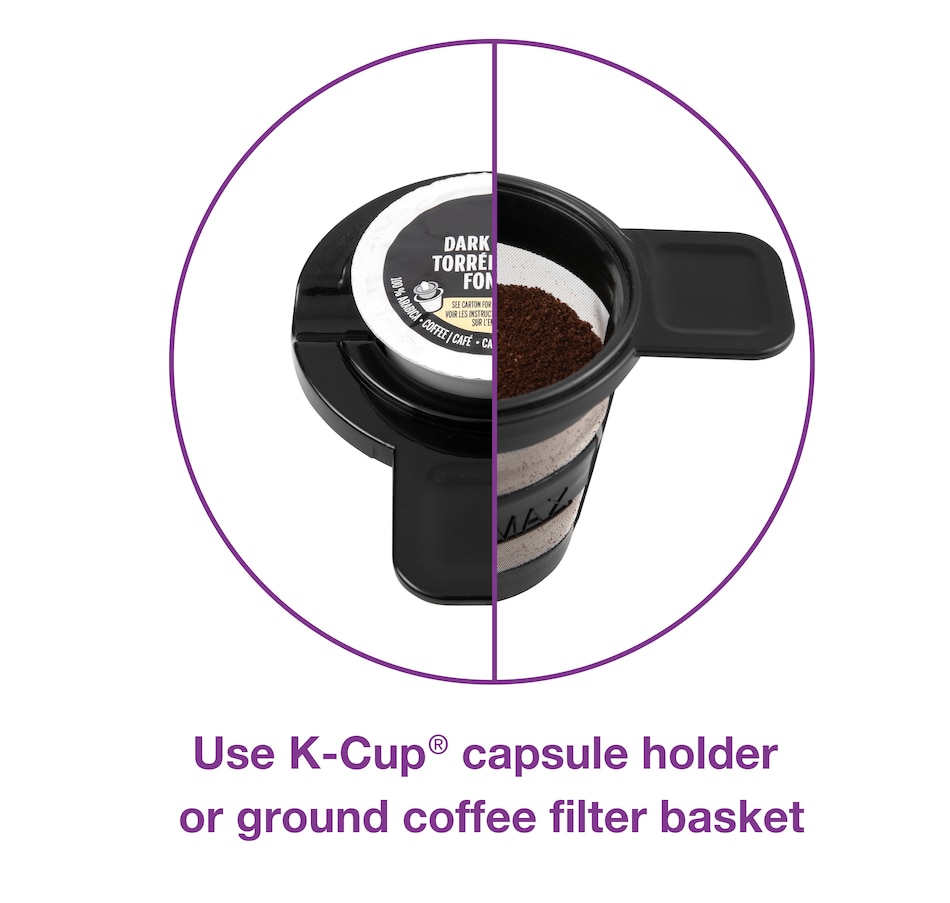 • Brews K-Cup coffee capsule as well as coffee grounds