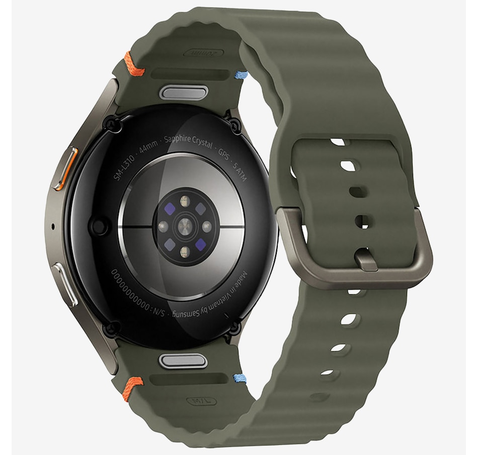 Meet the Galaxy Watch7 from Samsung, your AI-powered daily companion! It features a new 3nm processor that can supercharge your daily routine, allowing you to, for example, quickly switch from checking the weather to tracking your workouts in no time. Plus, it can optimize battery life to help the watch keep up with you. Its floating glass design and colourful stitching points also add a touch of elegance to your wrist, while ripples on the band show that you're ready for workouts.