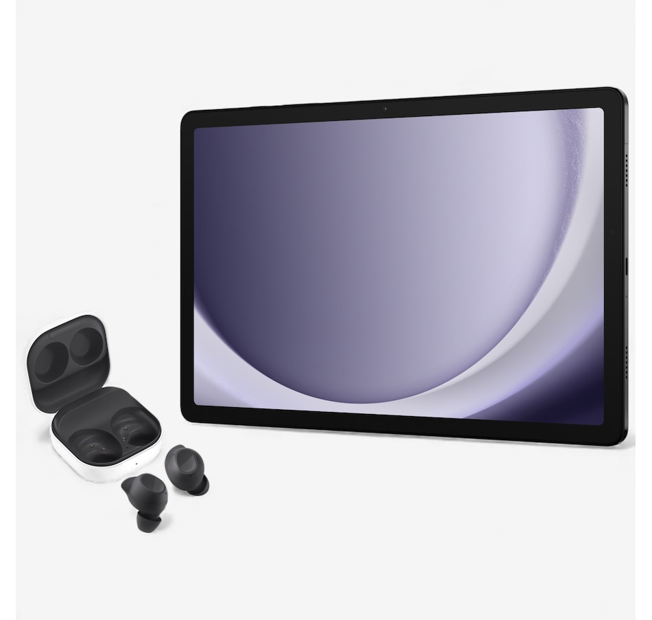 Stay connected and entertained with this tablet and earbud bundle from Samsung. The Tab A9 features an octa-core processor and 4 GB RAM, delivering smooth performance for work or play. Enjoy vibrant visuals on the 11" display, plus dual-band Wi-Fi, Bluetooth, a long-lasting battery and 64 GB of storage (which you can expand to 1 TB with a microSD card (not included).