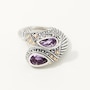 • Amethyst ring features: (2) 6x8mm pear shape, bezel-set & Amethyst (2.80 av. ctw)