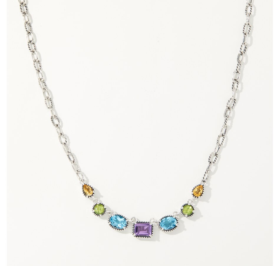 Finish your look with something exceptional and eye-catching wearing this multi gemstone necklace from Samuel B. Collection.