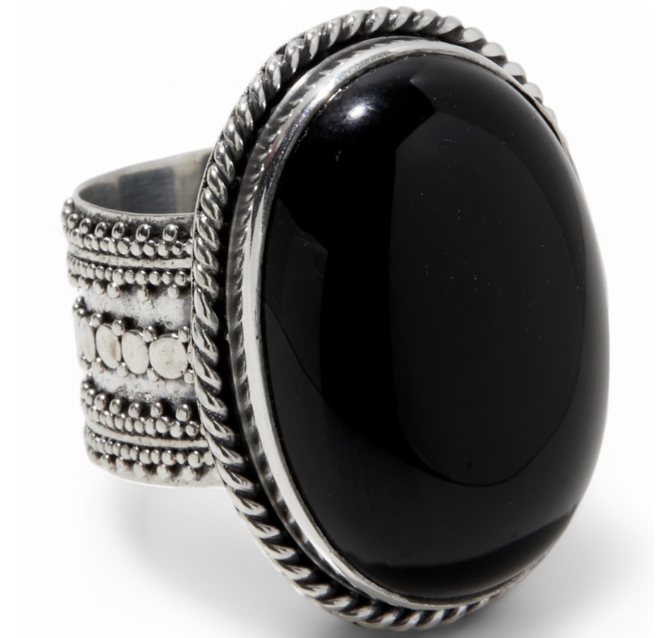 • (1) 18mm x 25mm oval shape, bezel set & faceted onyx (4.70 av. ctw)