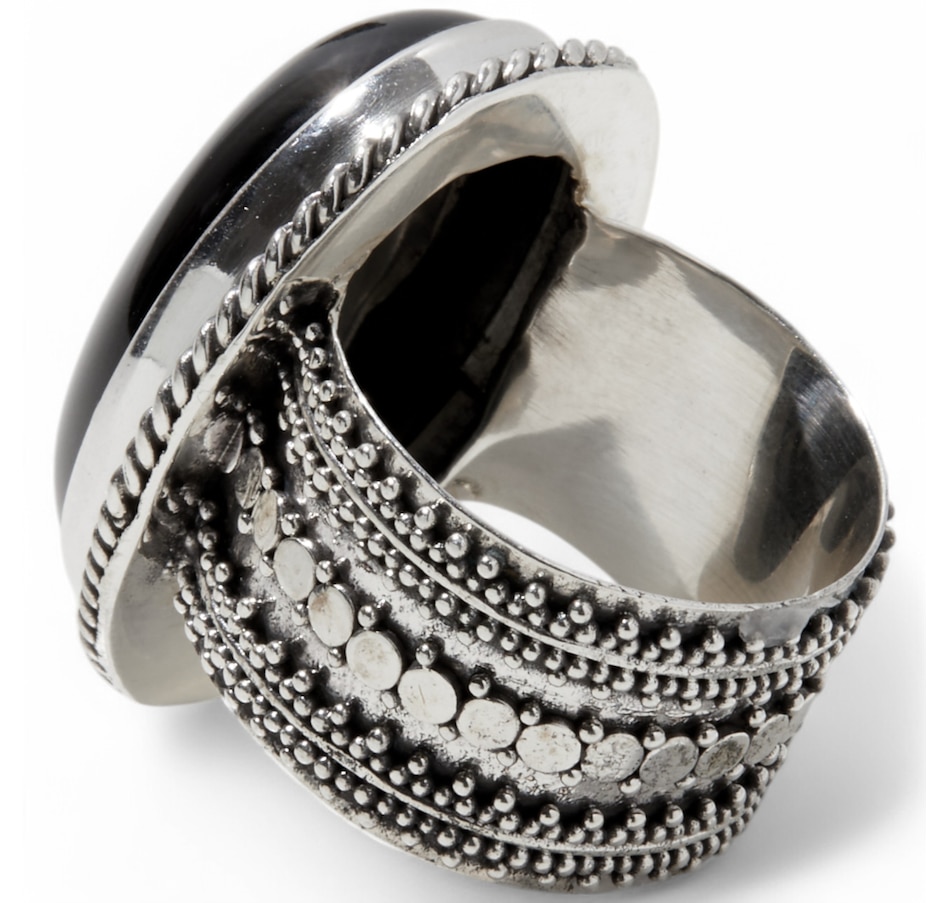 Accessorize every look in defined, classic style with this oval onyx ring from the Samuel B. Collection. It features beautiful scroll work on the band itself.