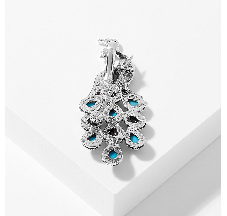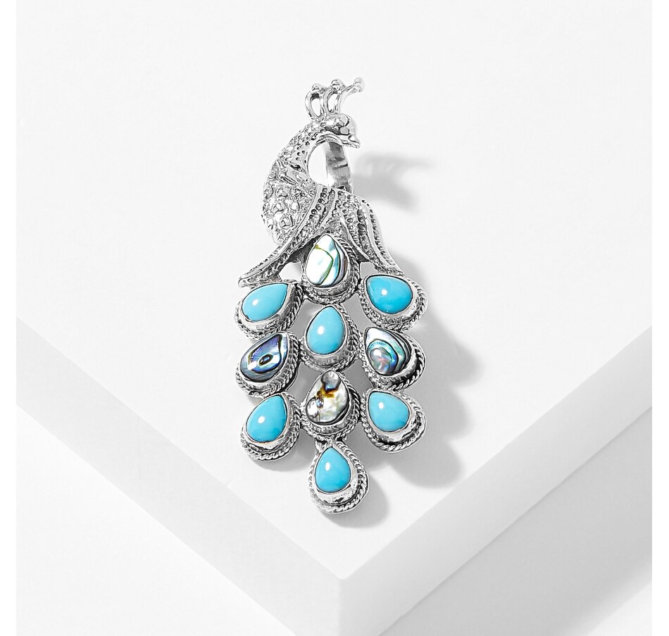 Sterling Silver Sleeping Beauty Turquoise Peacock Pendant/Brooch