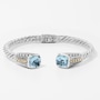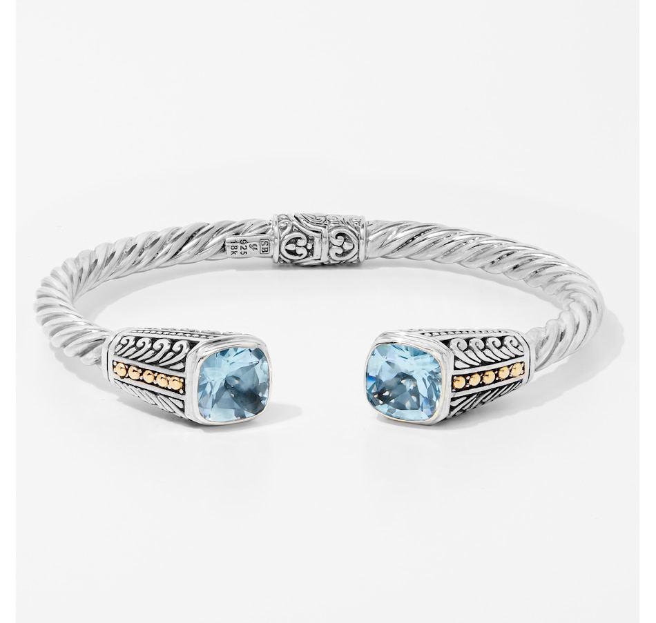 Samuel B Collection Sterling Silver/18K Cushion Cut Blue Topaz Cuff Bangle