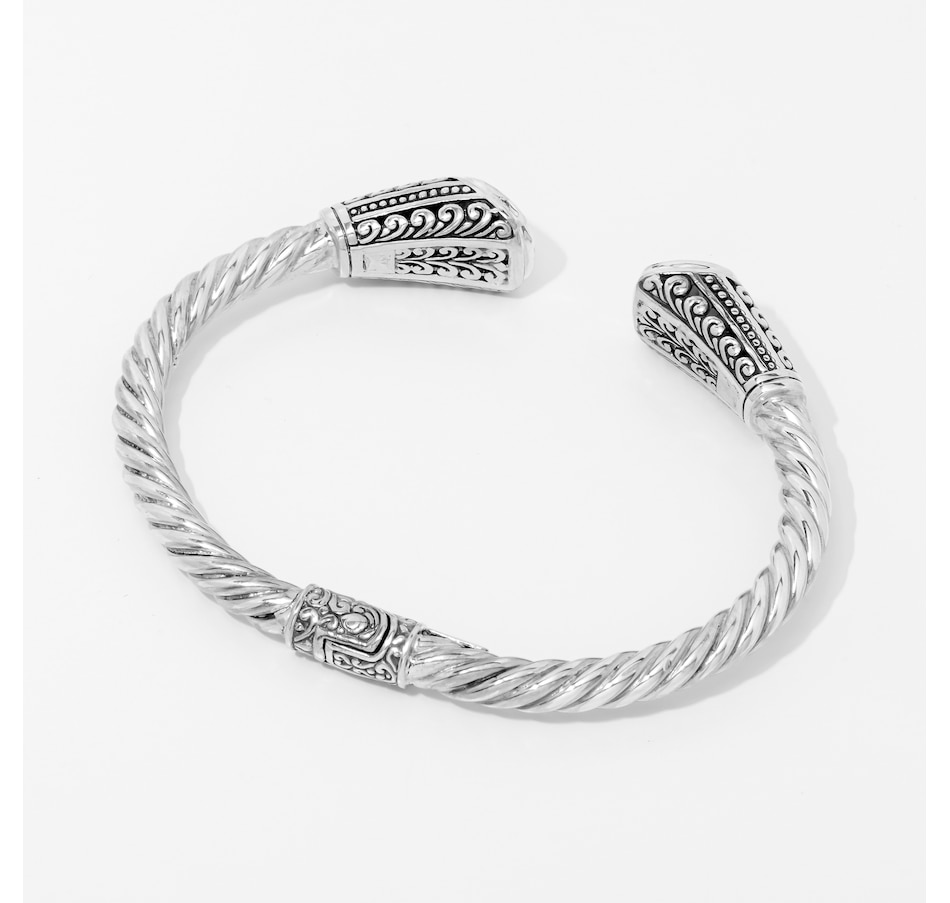 Accessorize your look in bright, sparkling style with this gorgeous blue topaz cuff bangle from the Samuel B. Collection.