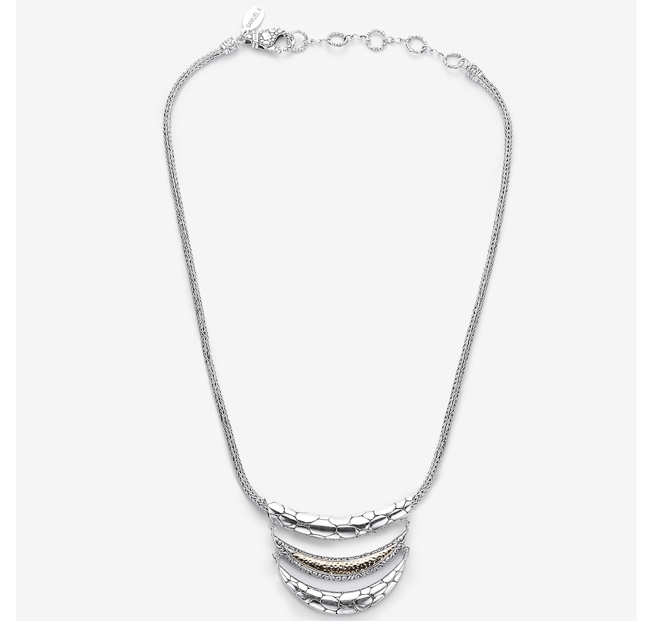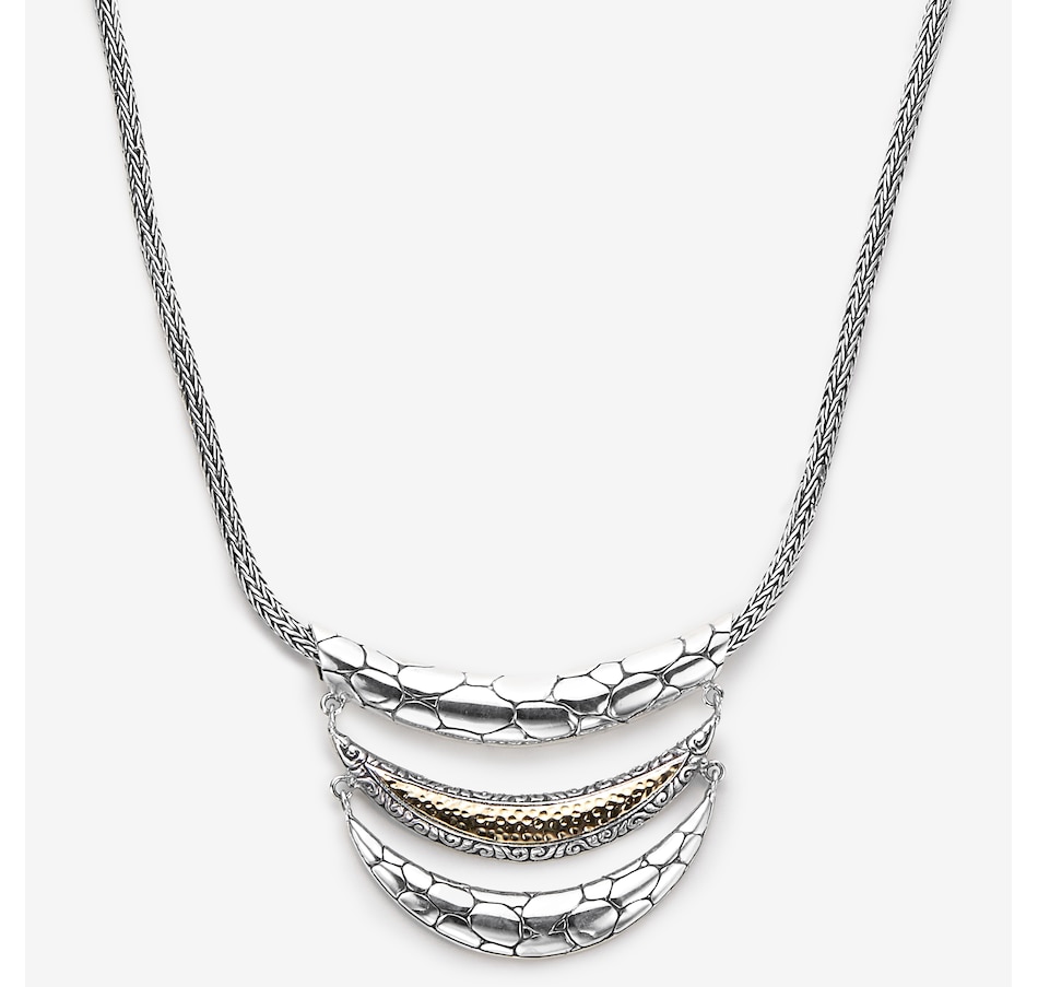 Sterling Silver/18K Triple Bar Necklace with Pebble Hammered Gold
