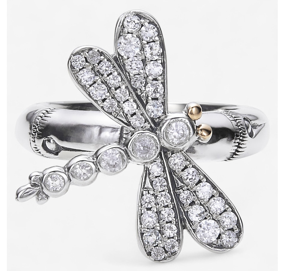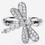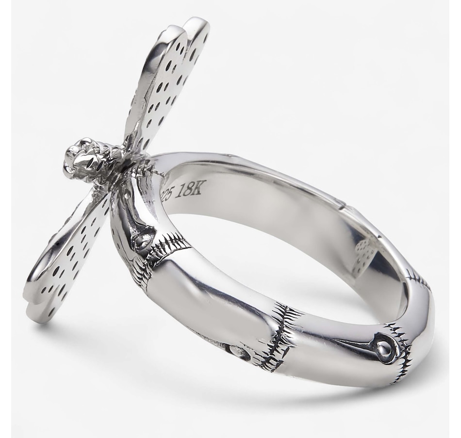 Samuel B Collection Sterling Silver/18K White Topaz Bamboo Design Dragon Fly Ring