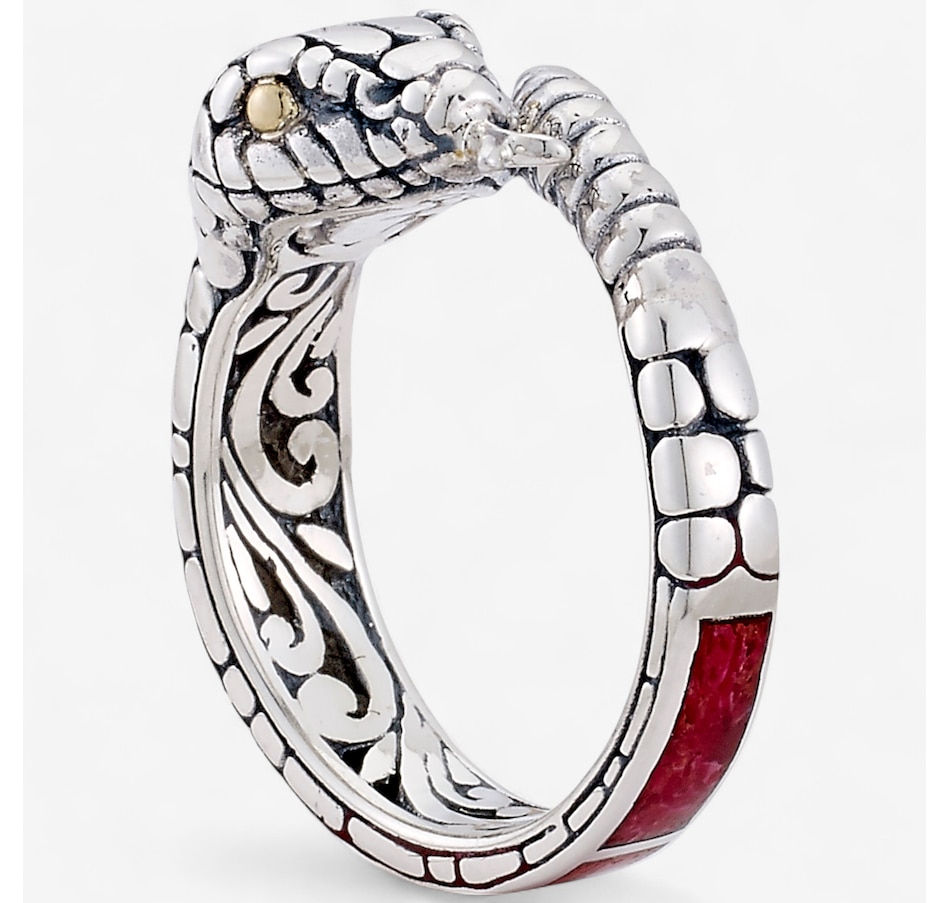 Samuel B Collection Sterling Silver/18K Yellow Gold Coral Snake Ring