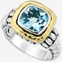 Sterling Silver/18K Yellow Gold Cushion Gemstone and Hammered Design Ring