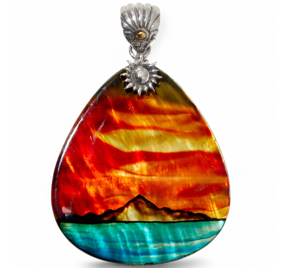 Sterling Silver/18K Yellow Gold Hand Painted Shell Pendant with Mountain View