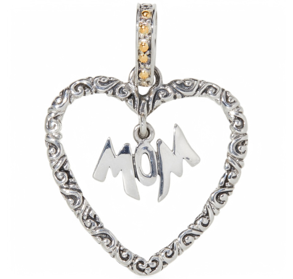 Samuel B Collection Sterling Silver/18K Yellow Gold Heart "Mom" Pendant