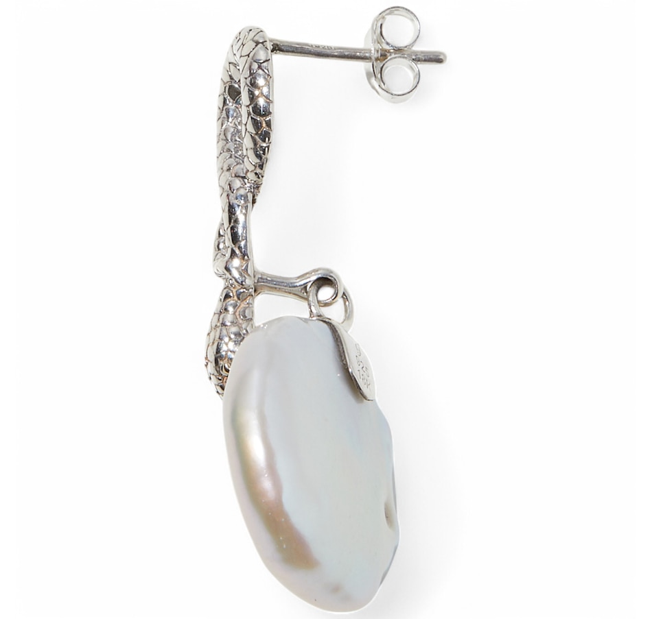 Sterling Silver/18K Yellow Gold Snake Baroque Pearl Earrings