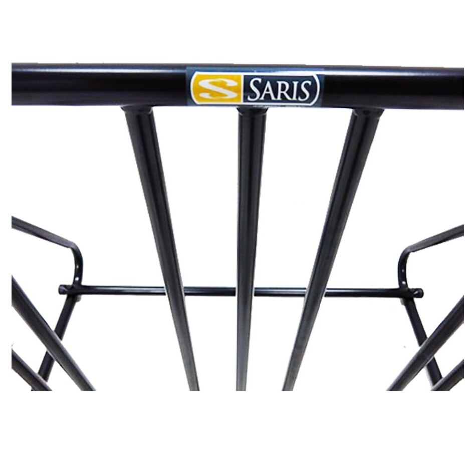 This bike stand rack's durable steel construction ensures long-lasting performance, while the adjustable arms accommodate various bike sizes and styles, its dimensions are 36 x 27.75 x 2.5 inches. The unique wheel stabilizing straps keep your bikes in place, preventing them from tipping or falling. Easy to assemble and use, the Saris Mighty Mite 6-Bike Parking Rack is a reliable and efficient way to store and display your bikes. Say goodbye to cluttered spaces with this indoor & outdoor bike storage parking rack.