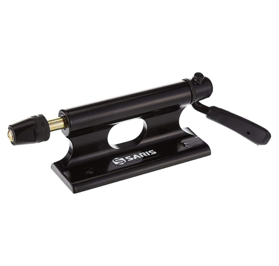 This bike fork holder (TR1BLK) is meant for use with the Traps Triple Track and Single Track specialty racks. Totally portable, and simple to use, the Unique bike block fork mount traps from Saris are made for securing your bike to your truck bed or SUV tie-downs, wherever you have room. Does not include the mounting hardware required for the Traps Track system. The bicycle fork mount is made with a 6061-T6 powder coated aluminum base that makes these traps both lightweight and strong with coated nut housing and quick release level for tool-less installation.