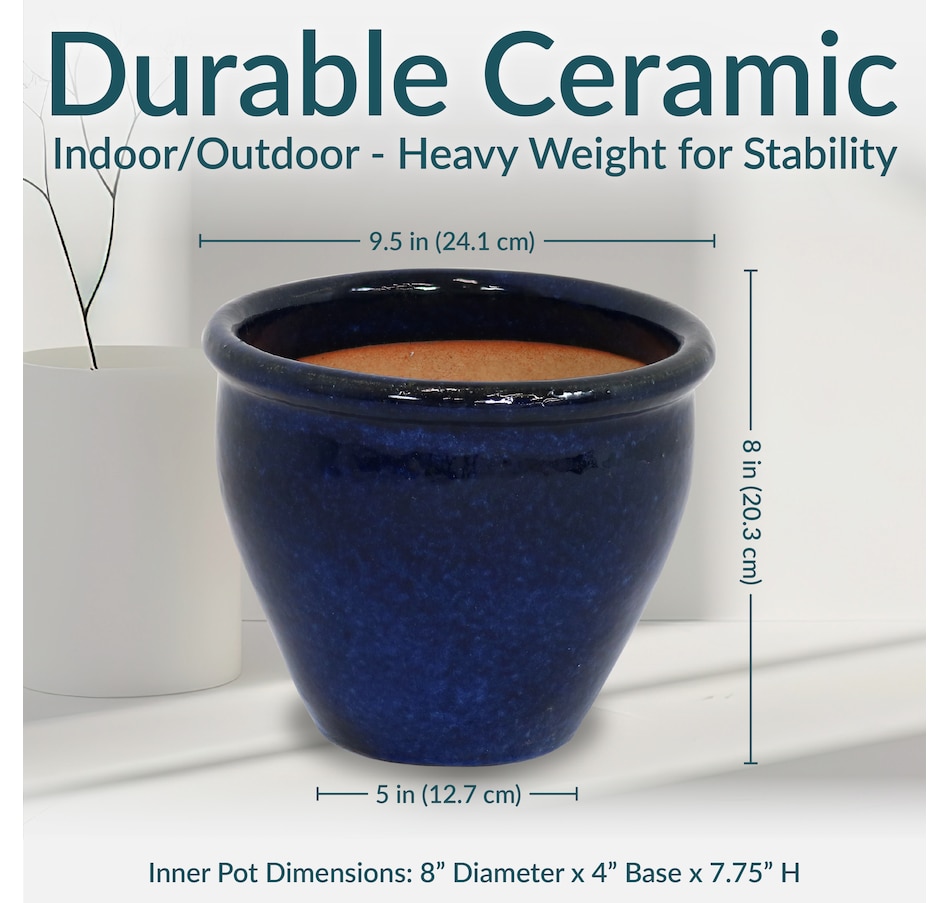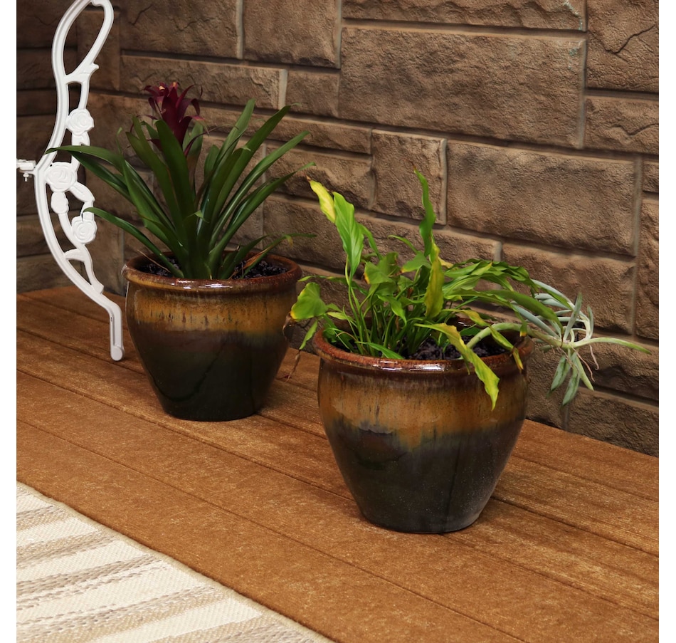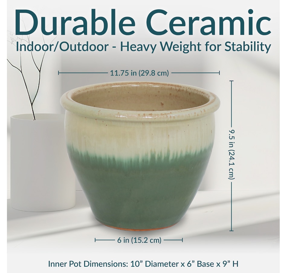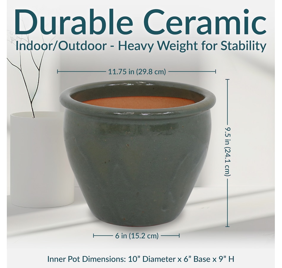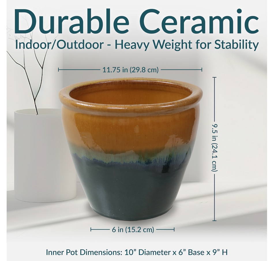 The glazed ceramic planter set combines timeless craftsmanship with functional design. These planters accommodate a wide variety of medium to small plants, from vibrant blooms and greenery to herbs. Constructed from durable ceramic, the decorative flowerpots offer a stable and insulated environment, shielding plant roots from temperature fluctuations. The smooth, glazed finish enhances their appearance with a sleek, polished look while also providing a moisture-resistant surface for easy maintenance. Designed to complement a range of indoor and outdoor settings, these planters bring sophistication to patios, porches, living rooms, and gardens alike. A drainage hole in the bottom of each one promotes healthy root systems by preventing overwatering. Place a saucer (not included) beneath the planter to prevent water leakage if using indoors.