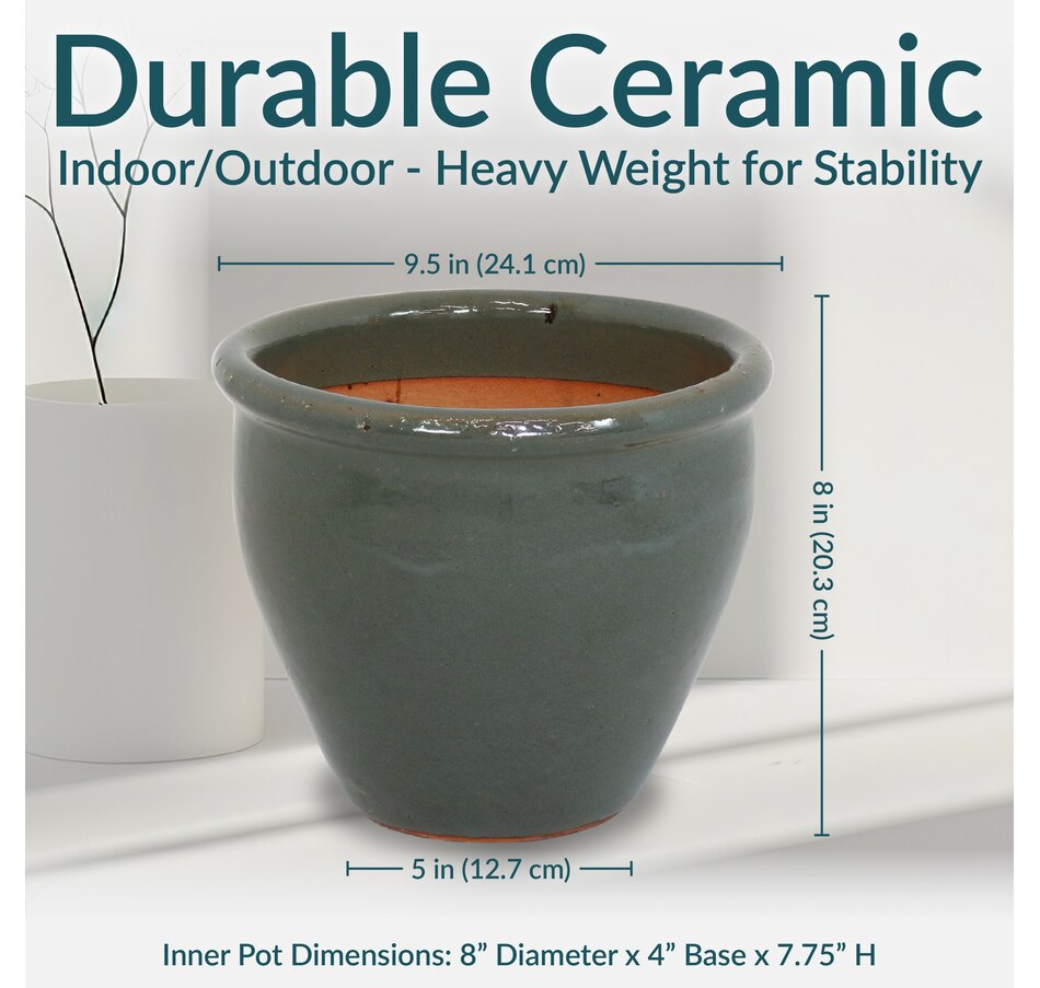 • Medium ceramic pot holds 1.9 gallons of soil