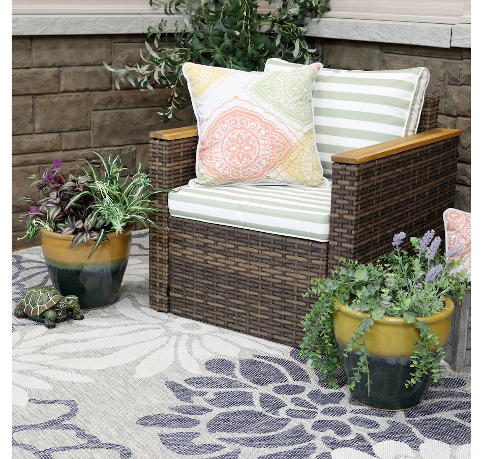 • Decorative flower pot adds indoor or outdoor style