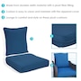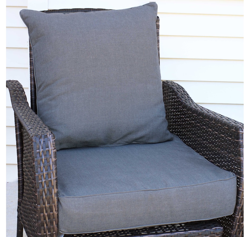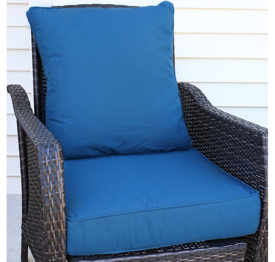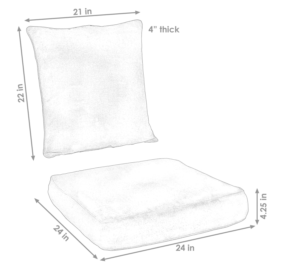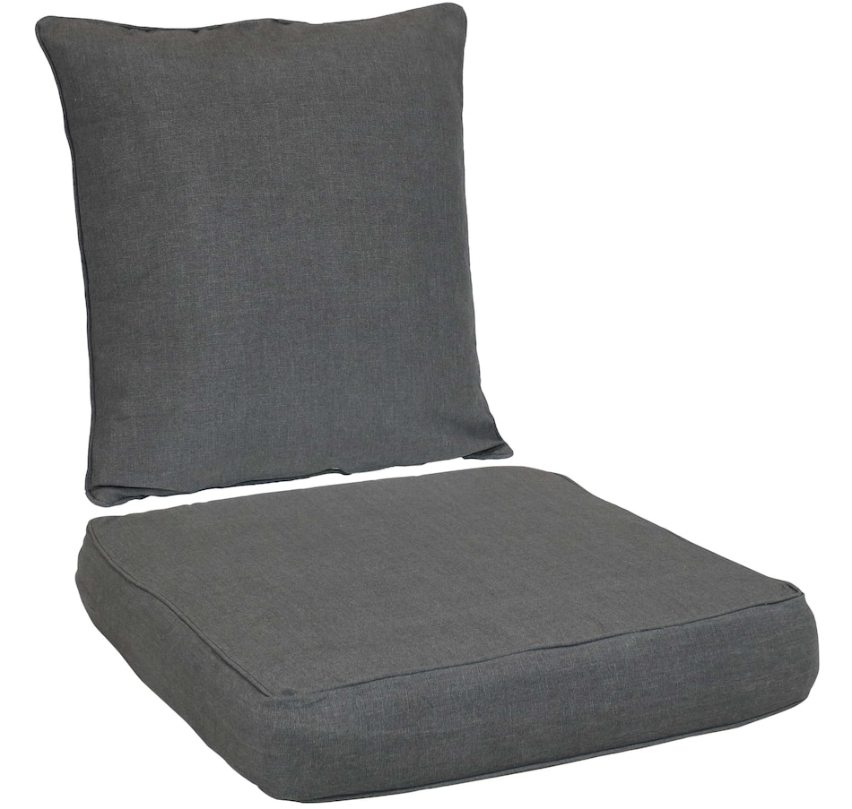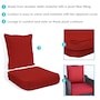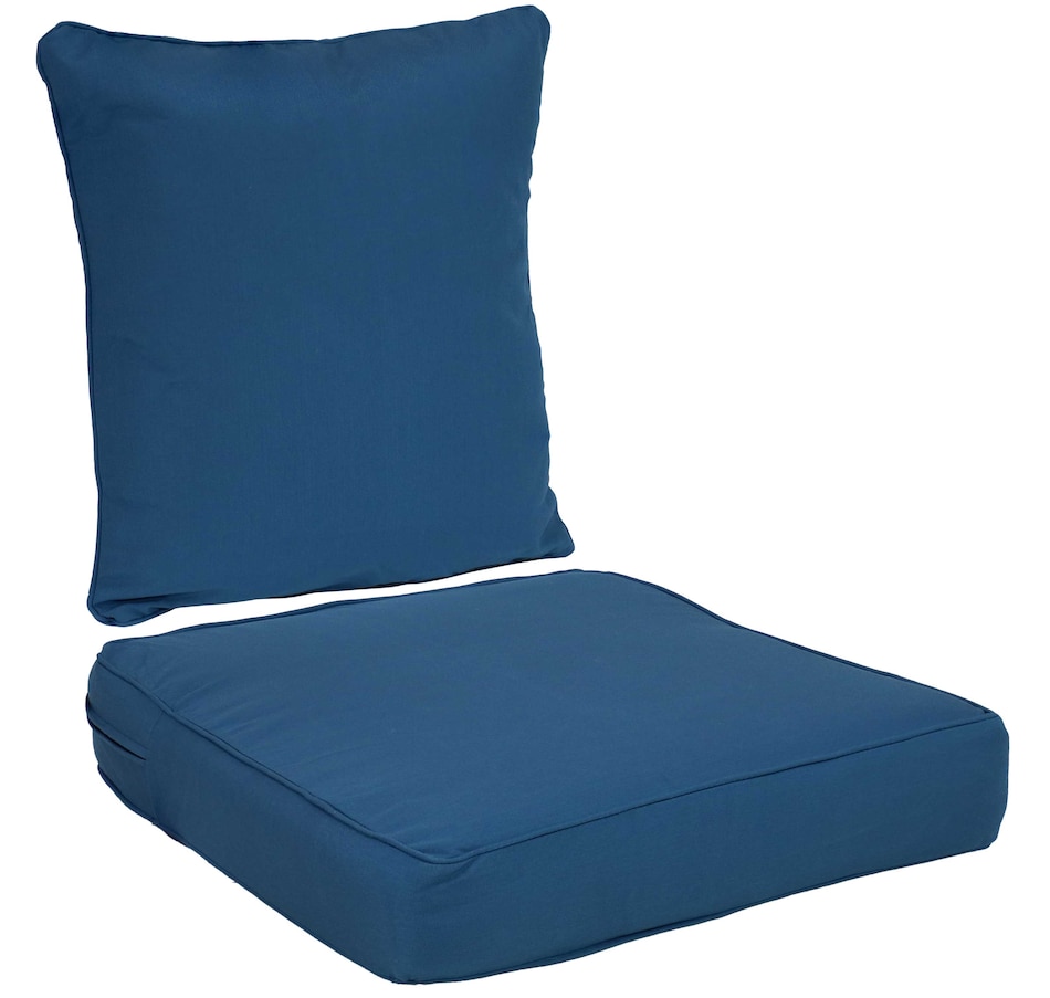 Make chairs on the patio, deck, or in the yard even more comfortable with this back and seat cushion set. Designed for deep seating, these plush cushions provide a cushy place to sit and sink into while relaxing after a long day. These cushions are constructed from a durable and easy-to-maintain fabric. The material is also durable against the elements, so they make a great addition to a variety of indoor or outdoor spaces no matter the weather! Ideal for replacing old, worn cushions or for enhancing brand-new patio furniture, these cushions are sure to be a welcome addition to any living space. They are available in several vibrant shades to give any space a pop of color or for complementing any modern, contemporary, or colorful home aesthetic. These versatile pillows are wonderful accessories to make the porch, garden, patio and indoor living areas a comfortable place to unwind and relax.