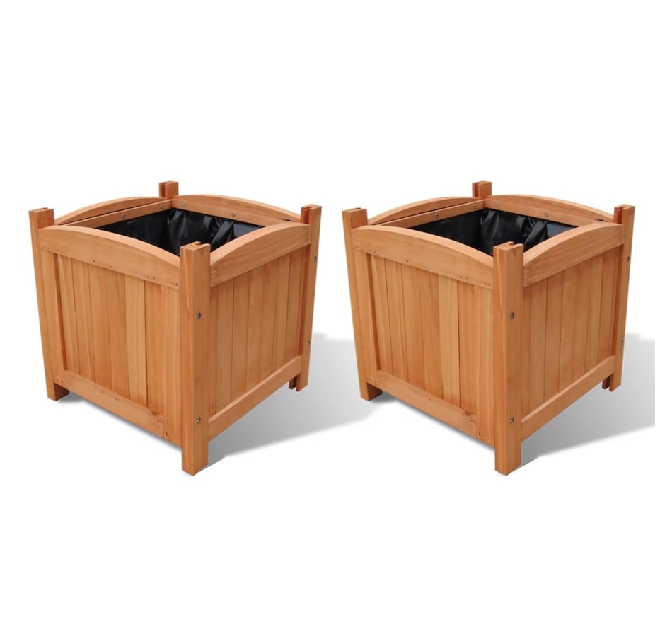 This set of 2 beautiful raised beds will be an eye-catcher in your garden, or on your deck or patio. All kinds of plants and flowers can be planted in them. The planters are made of weather-resistant solid wood, which is durable enough to be used outdoors all year round. The PE liner keeps the soil in and retains moisture. Delivery includes 2 wooden planters.