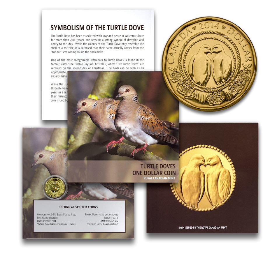 Set of Five "Two Turtle Doves" RCM One Dollar Coins Numismatic Uncirculated Condition