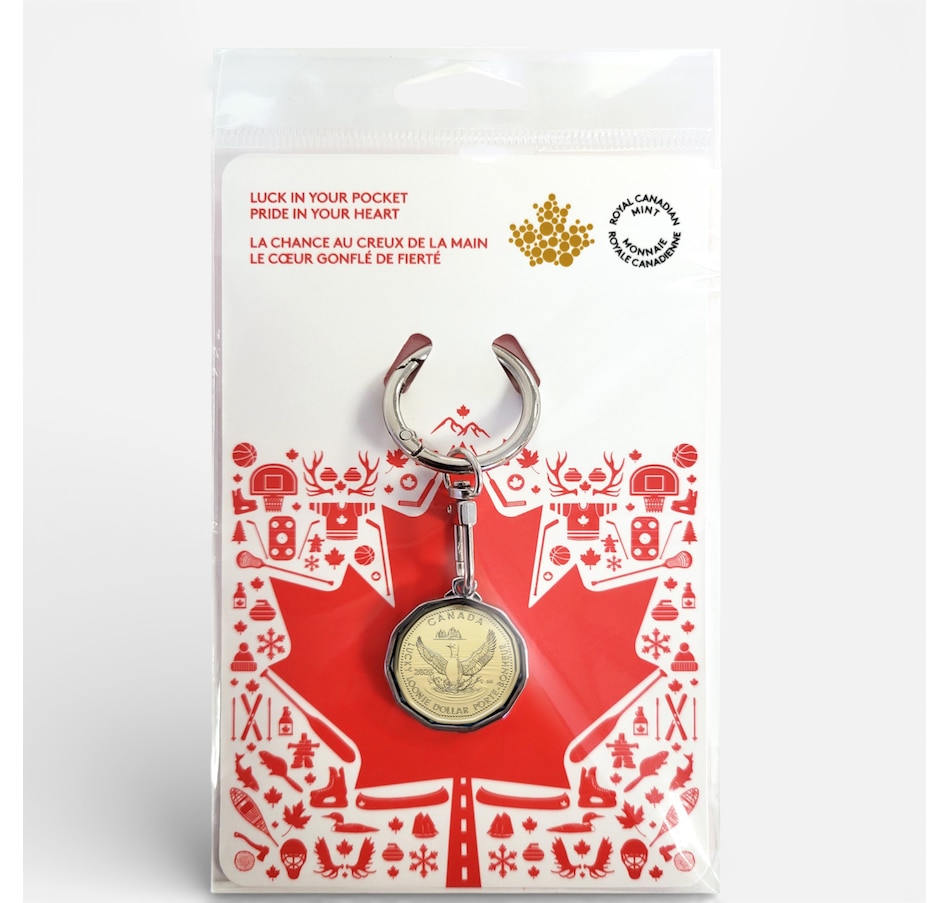 Celebrate the spirit of Canada with this set of two Lucky Loonie keychains, a special collector coin keepsake that embodies the heart and soul of this nation. Canada's Lucky Loonie tradition honours the achievements and dedication of the Canadian athletes who inspire us all, and as a pre-game gift or a hidden lucky symbol, it's a fun way for parents and coaches to encourage the next generation to dream big, believe in themselves and strive for excellence. Beyond sports, the Lucky Loonie is your patriotic good luck charm; it comes enclosed in a keychain, allowing you to show your Canadian pride and carry the essence of Canada with you wherever you go!
