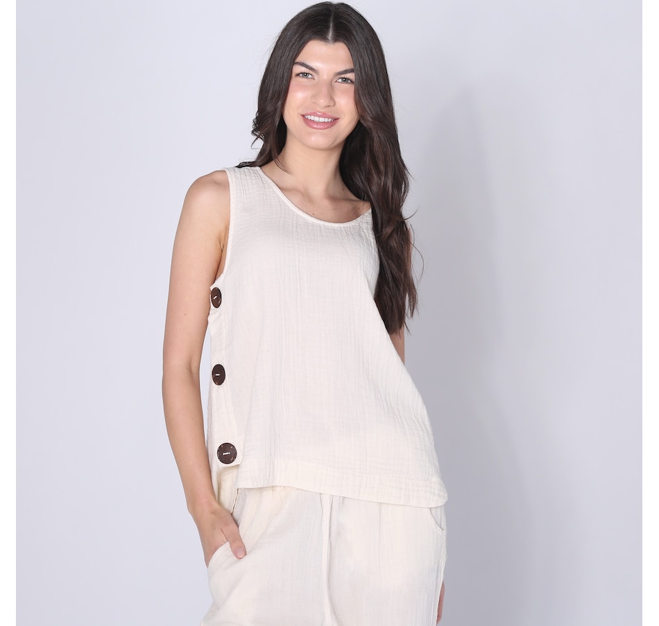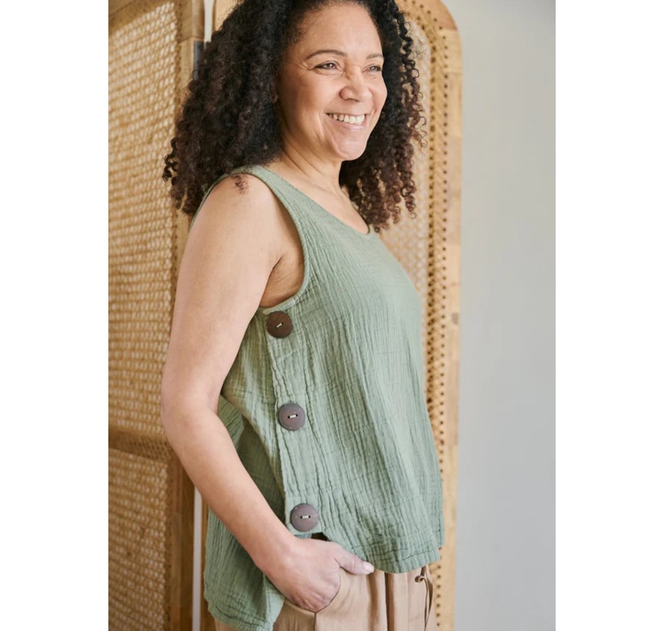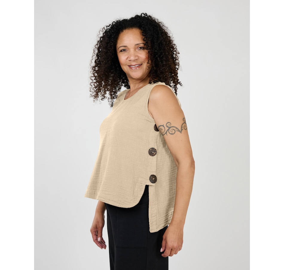 Soft cotton gauze meets a stylish high-low hemline in the Carmen tank top from Shannon Passero. Accented with charming handmade coconut buttons, this is an essential piece for any closet. Paired perfectly with their Juniper crop pant, you've got a head-to-toe sophisticated look that's sure to turn heads.