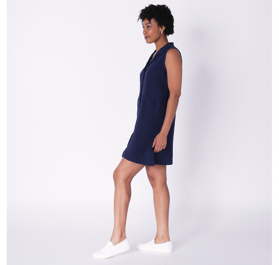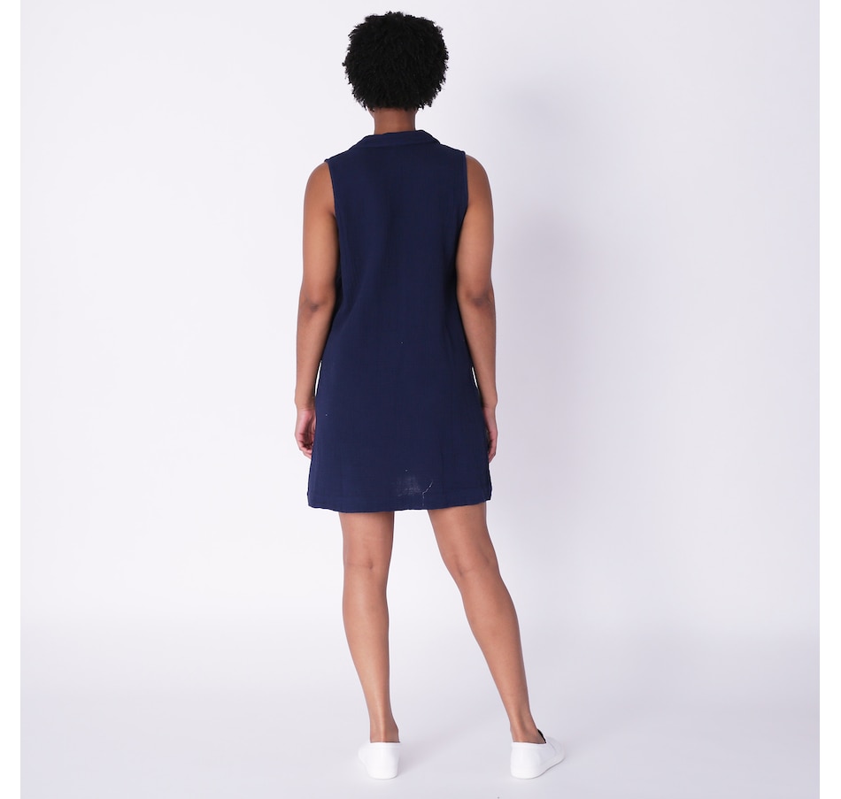The tunic length, sleeveless A-line silhouette, and welted pockets of this dress from Shannon Passero exude effortless sophistication. The signature coconut buttons add a fun and fresh touch to this classic piece.