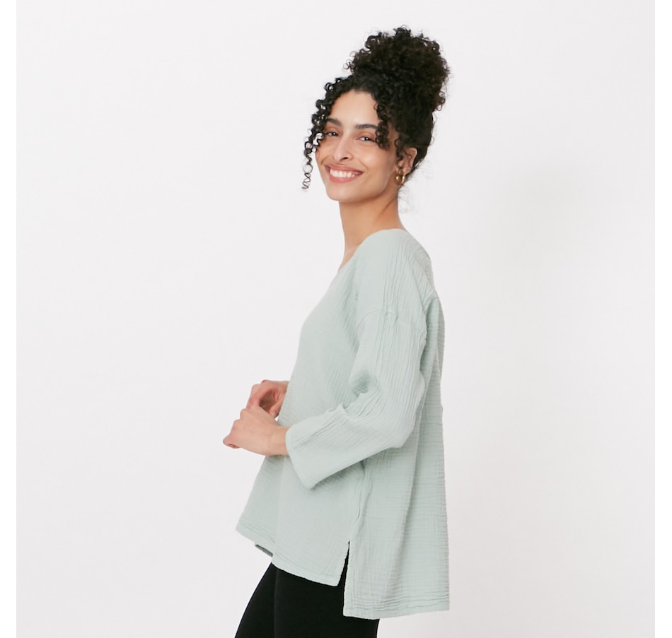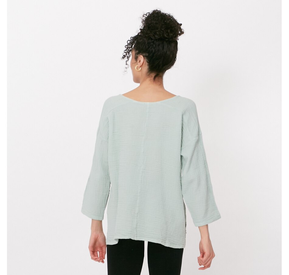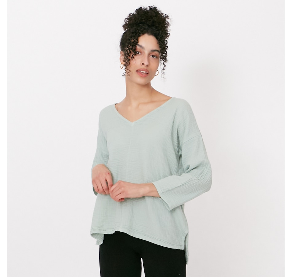 Just in time to add something distinct to your spring look, check out this crinkle gauze blouse from Shannon Passero. Available in a wide array of different colours to suit every taste, you are sure to find the one that compliments you the most, and finishes your seasonal outfits with stylish charm. Slip into something stylish enough to wear out, and comfortable enough to lounge in. This 100% cotton gauze V-neck top owns a refined style that goes with anything, is lightweight and breathable, and available to you at showstopper value, exclusively here at TSC!