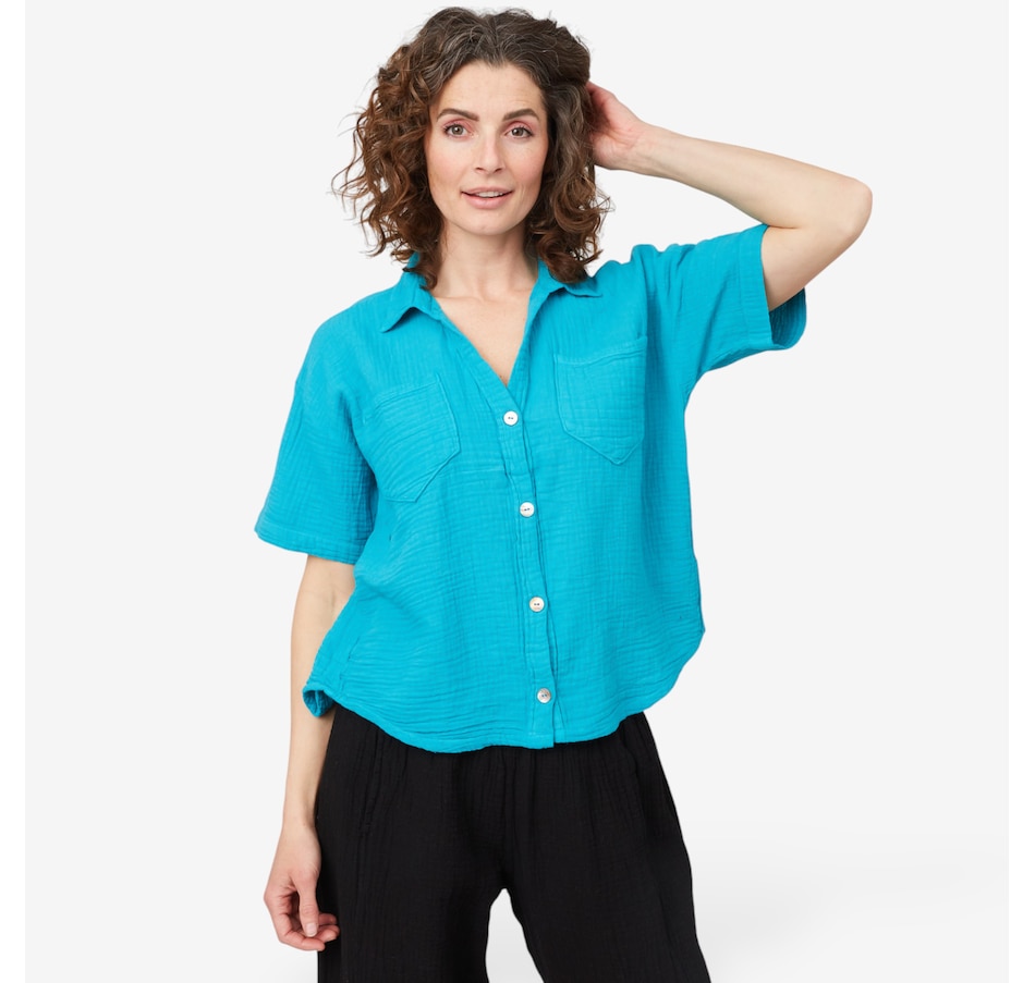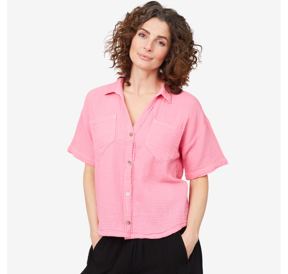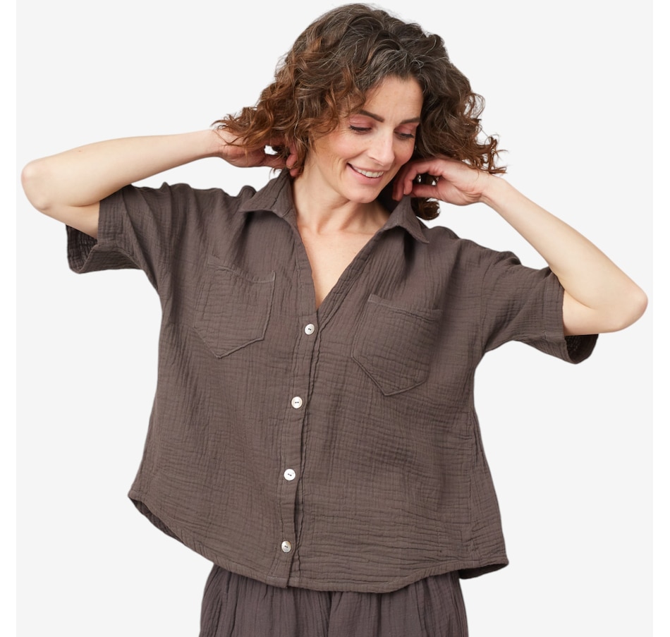 Meet the Deionna shirt, a new go-to for casual-yet-polished style. This short-sleeve top features a classic button-up design with two front pockets, adding just the right amount of functionality and flair. Made for easy layering or wearing on its own, the Deionna is versatile, comfortable, and effortlessly chic...ideal for a laid-back look that still feels put together.