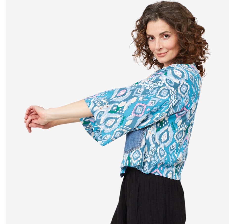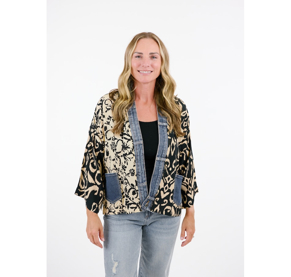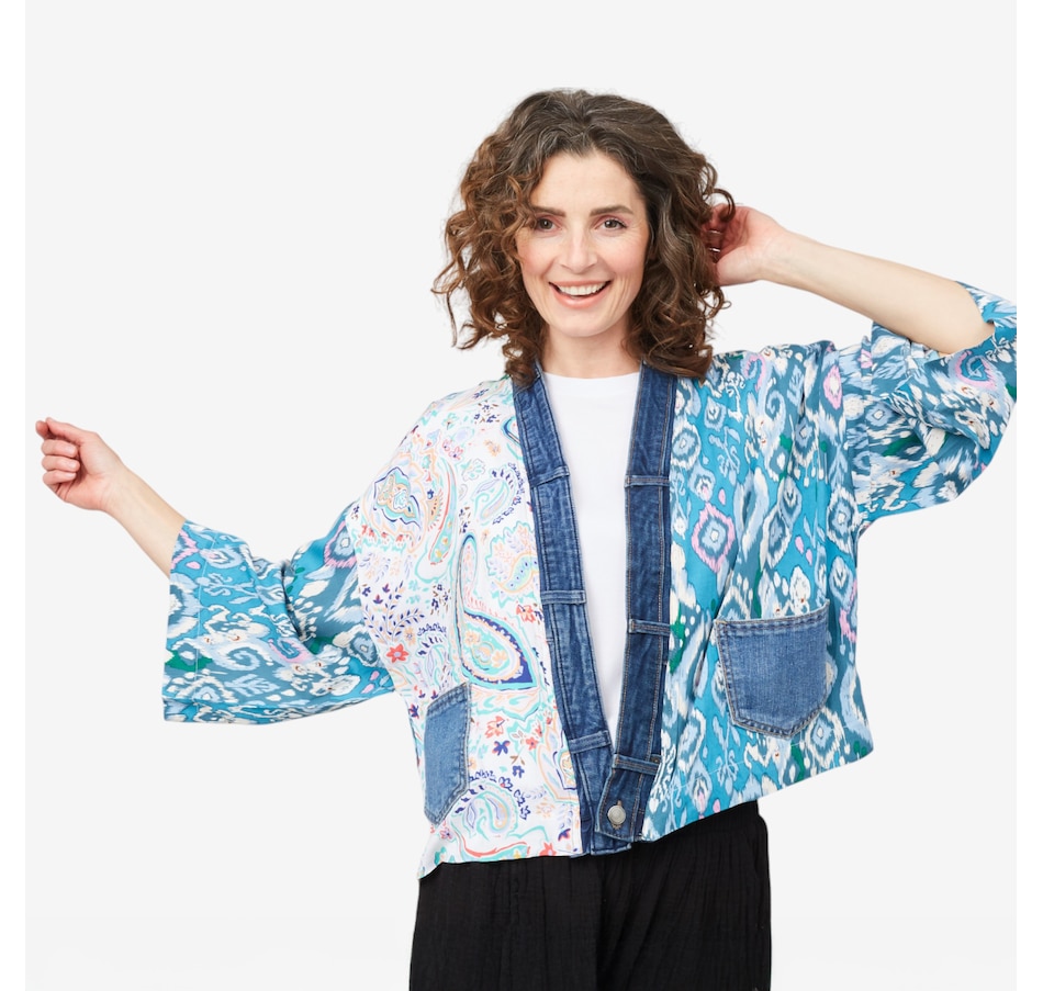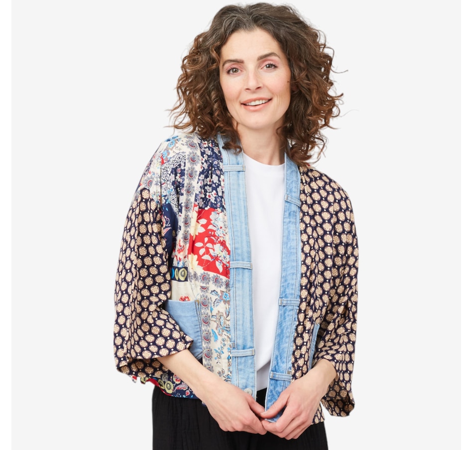 Turn heads and steal the spotlight with the sensational Karol cardigan from Shannon Passero! Adorned with elegant prints lovingly crafted by their women's co-op in Thailand and featuring deconstructed vintage upcycled denim, this piece is an exceptional fashion statement; it's not just a piece of clothing, it's a story of artistry and sustainability.