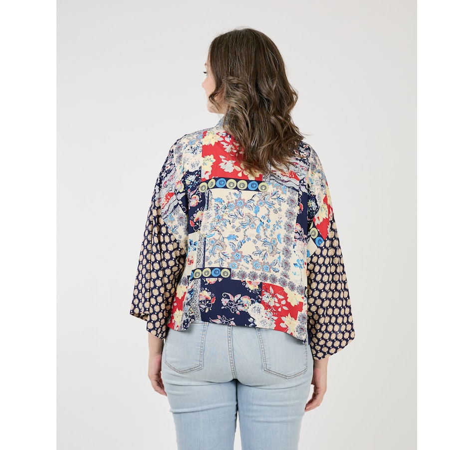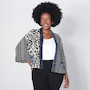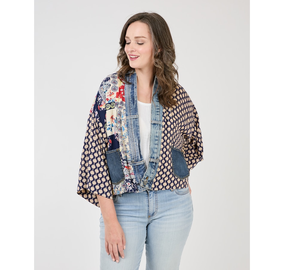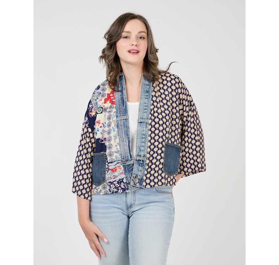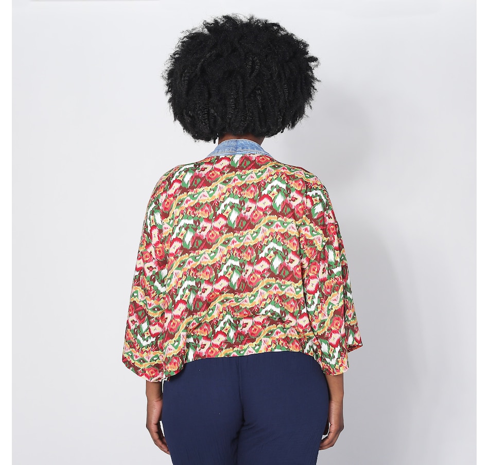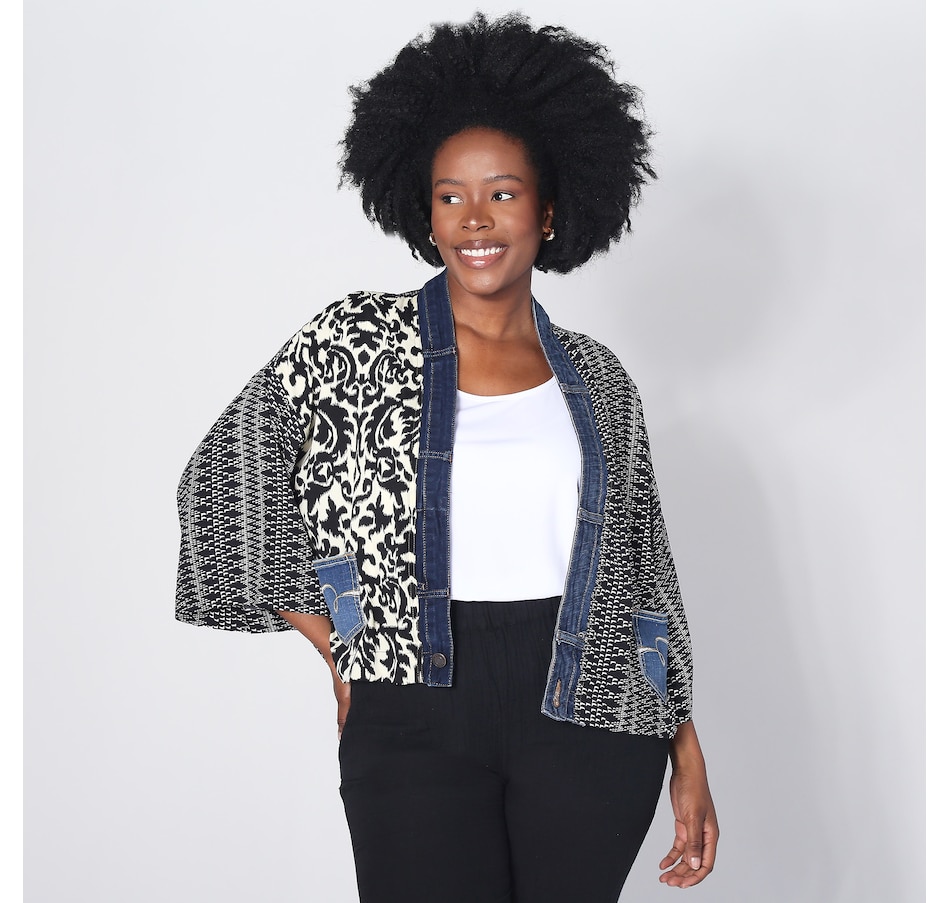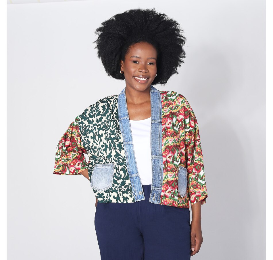 Showcasing style, comfort, and sustainability, the Karol cardigan is a testament to how fashion can transform waste into something beautiful. With the elegant prints made with care by Shannon Passero's woman's co-op in Thailand and deconstructed vintage upcycled denim, you'll have all eyes on you. It's a perfect addition to any outfit, with fun mixed prints and patterns designed to complement your outfit.