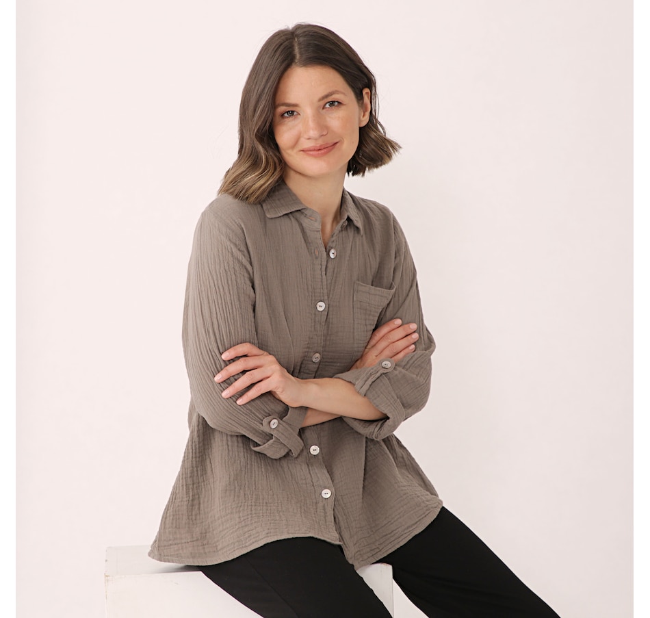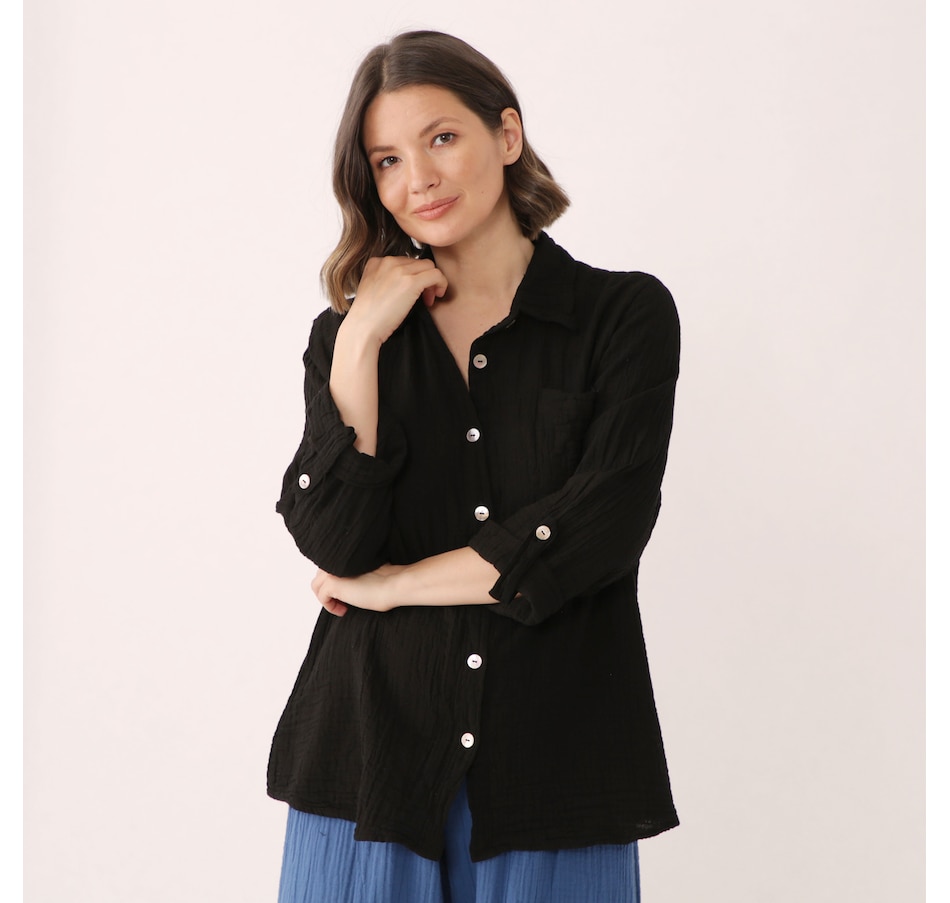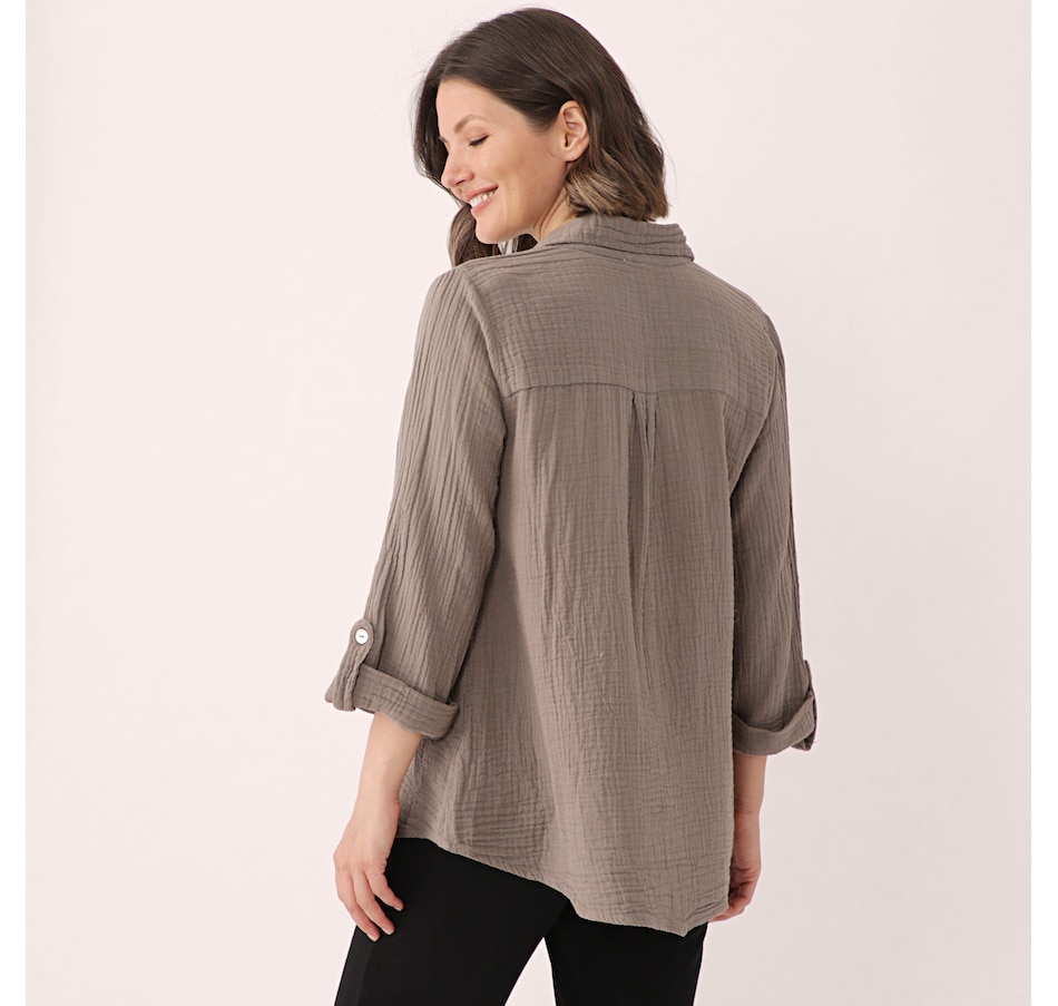 • Semi-fitted, button closure, pockets, 3/4 sleeve