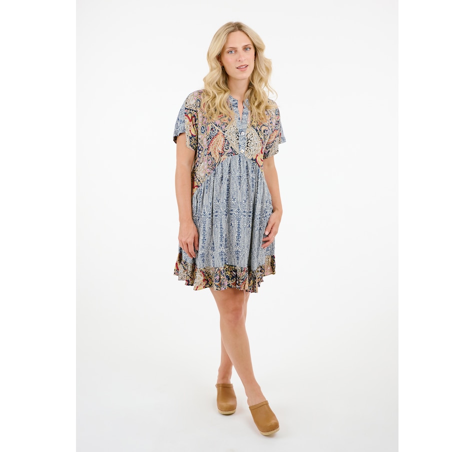 The Marisha dress is a stunning piece that features a tiered, flowing silhouette that moves gracefully with every step. Its unique patterned prints add a touch of artistic flair, making it a standout choice for any occasion. With short sleeves for a breezy, comfortable fit, this dress exudes effortless style. Ideal for day-to-night wear, the Marisha combines femininity and modern design.