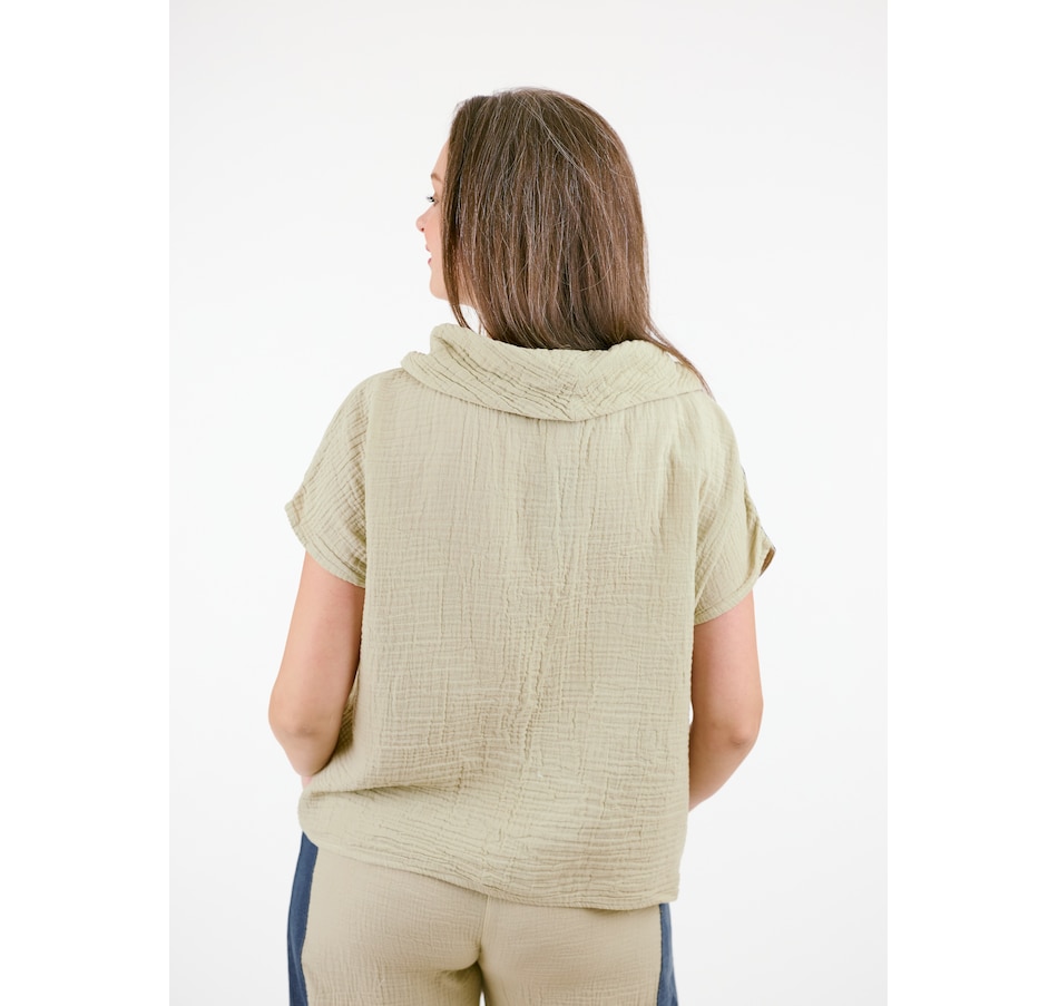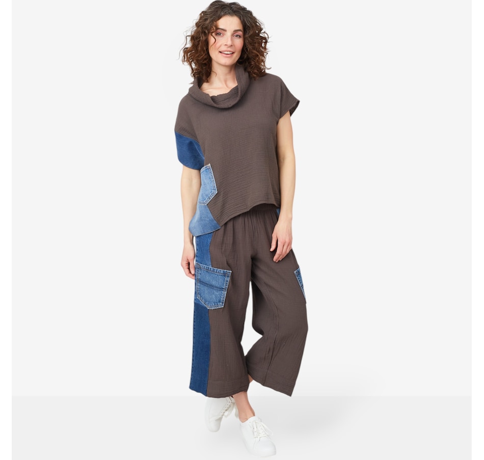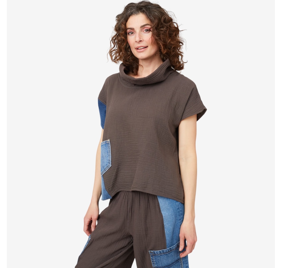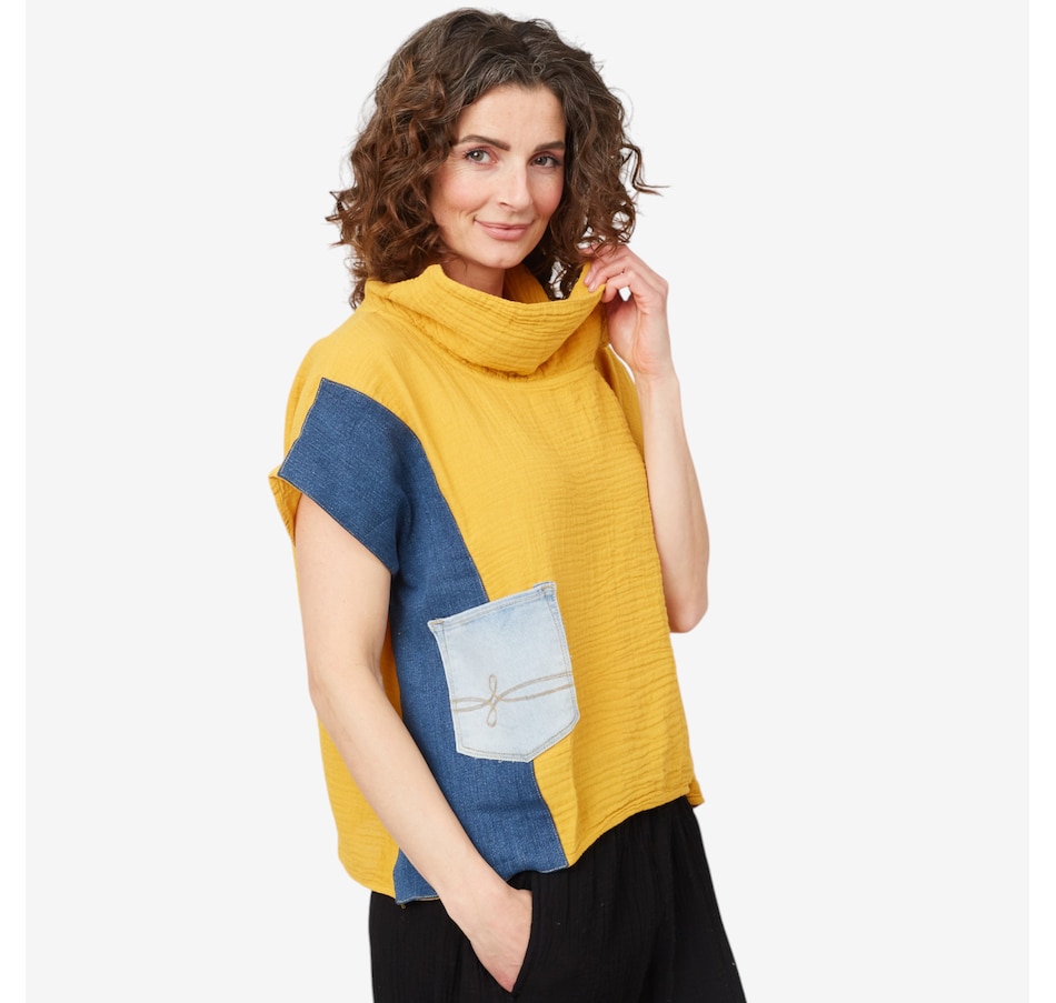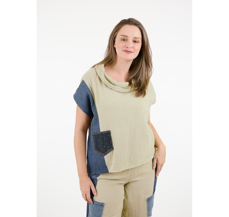 Introducing the Valetta top, an ideal blend of soft, breathable cotton gauze and unique, eco-friendly upcycled denim details. It offers a relaxed, effortless fit with a touch of sustainable style. The denim accents add a modern twist to the airy fabric, making the Valetta both chic and sustainable. Ideal for those who love fashion with a purpose, it's a versatile piece that will elevate any casual look.