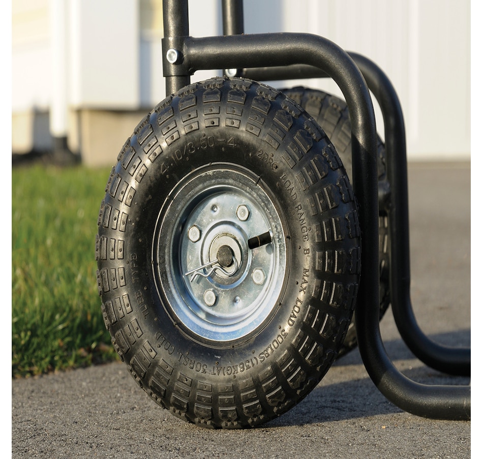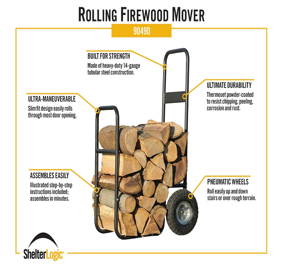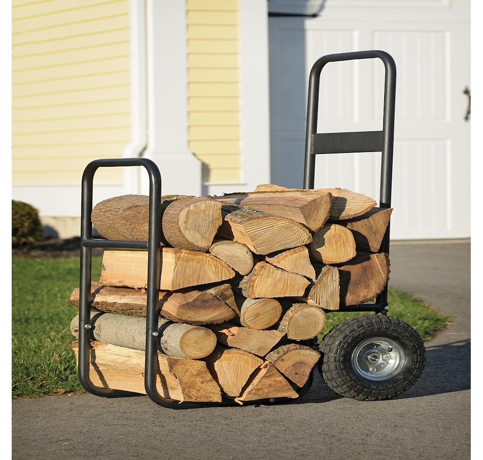 The ready-to-roll purpose wood mover assembles with ease and really stands up to the elements. A super sturdy frame design and all-terrain tires make this mover a must have for hauling wood and other large loads.