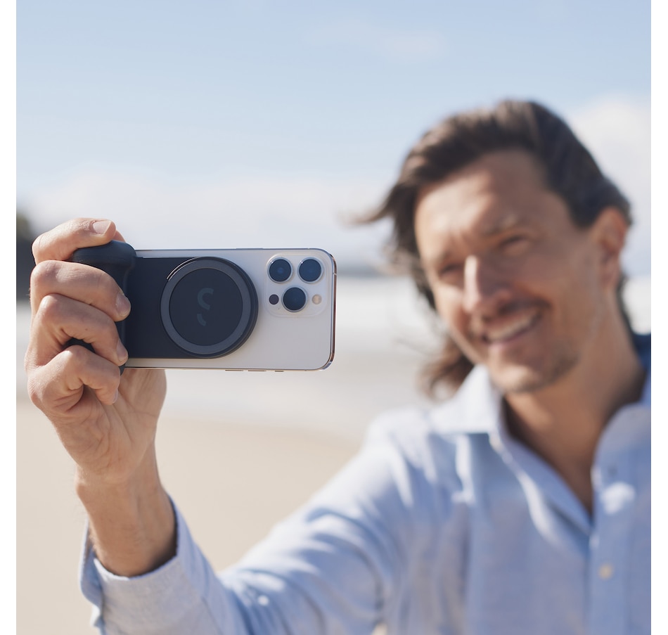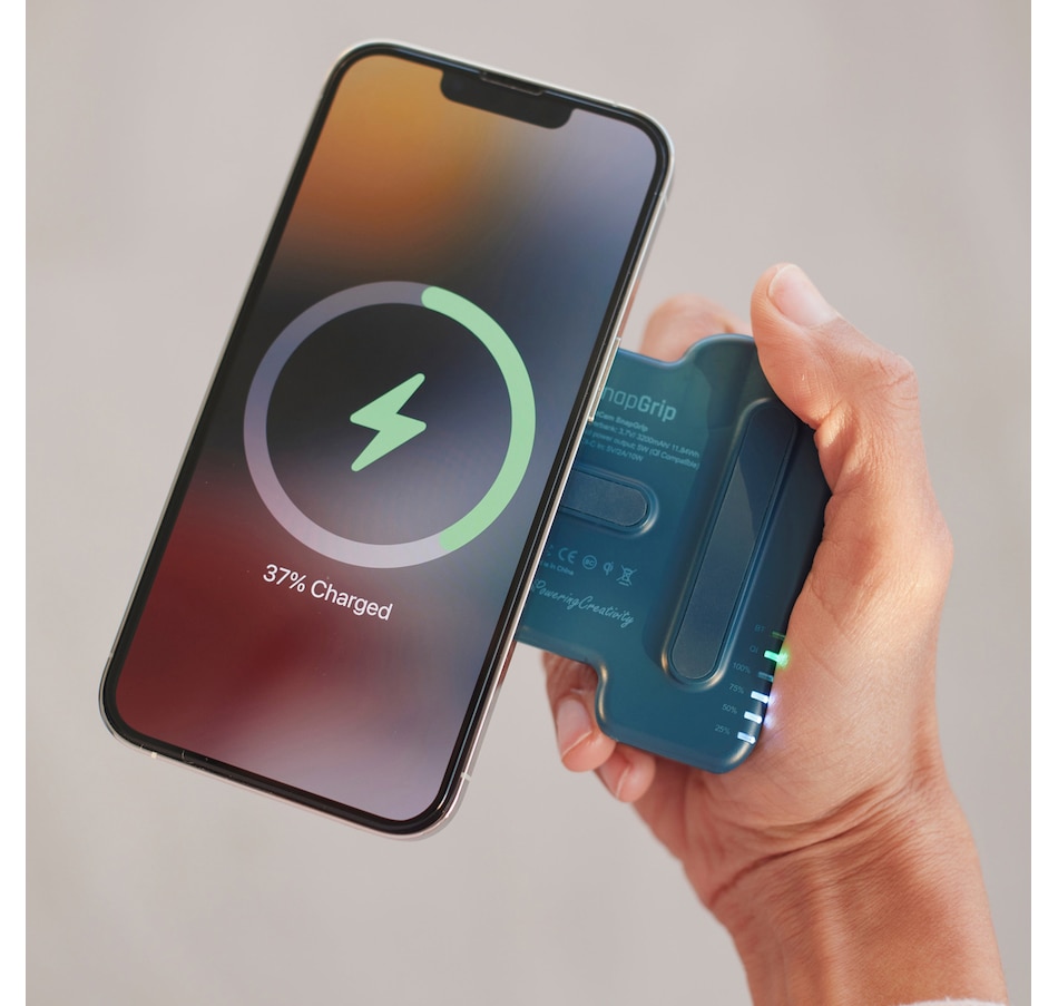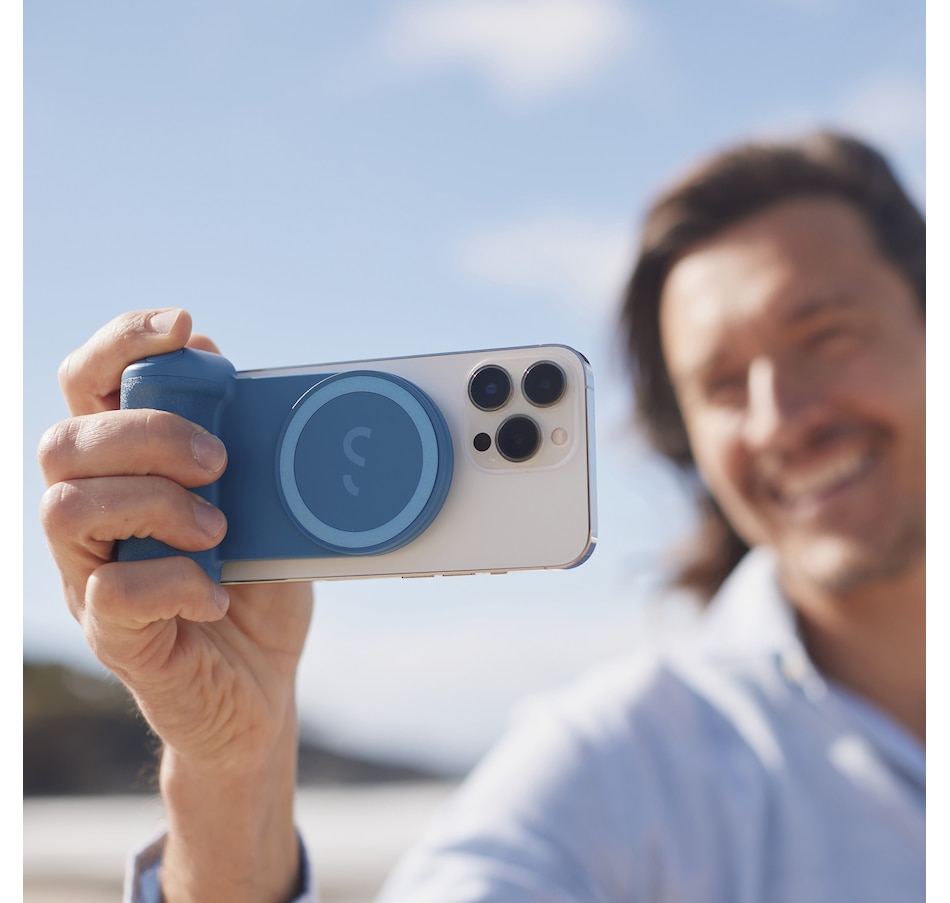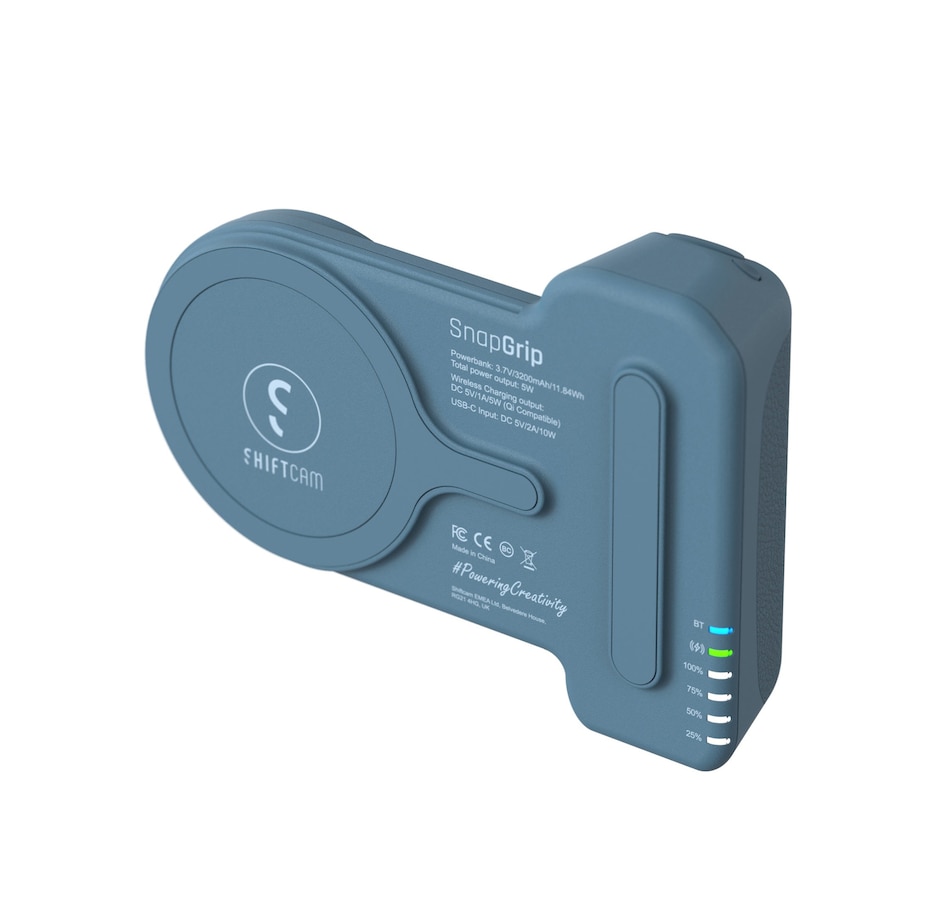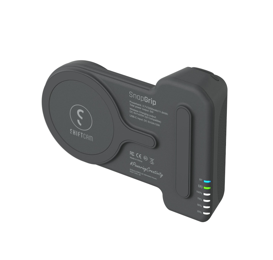With a comfortable camera-like grip, wireless shutter button, built-in Qi-compatible 3,200-mAh wireless power bank that tops up your smartphone battery, and the ability to shoot and review in portrait, landscape and dock modes, SnapGrip is the simplest and easiest way to enhance your mobile photography and videography.