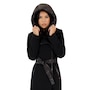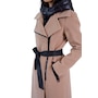 The Maya jacket from Sicily is composed of double face wool and genuine leather trims. The functional and removable inner hood bib is cushioned for extra warmth, it closes with a stylish asymmetrical zip closure, and the welt pocket also has zipper closure and leather trim. It finishes with storm-cushioned cuffs and a luxurious smooth touch feel. Its layers are temperature and wind tested to -15c.